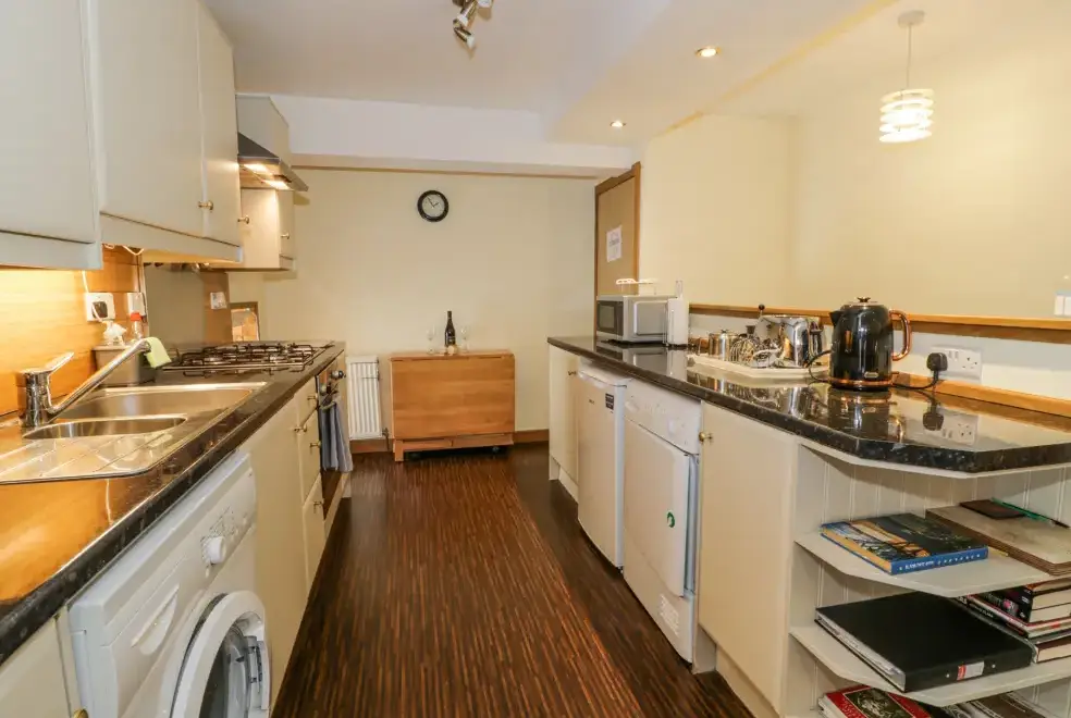 The Old Brewery Store is a delightful terraced cottage nestled in the heart of the Dumfriesshire village of Gatehouse of Fleet. This romantic upside-down cottage offers cosy accommodation for two, featuring a ground floor double bedroom and a ground floor shower room. The first floor boasts a welcoming open plan living area with a well-equipped kitchen, dining space, and comfortable sitting area complete with a sofa and electric fire. Perfect for a couple's retreat, this cottage enjoys a central village location.