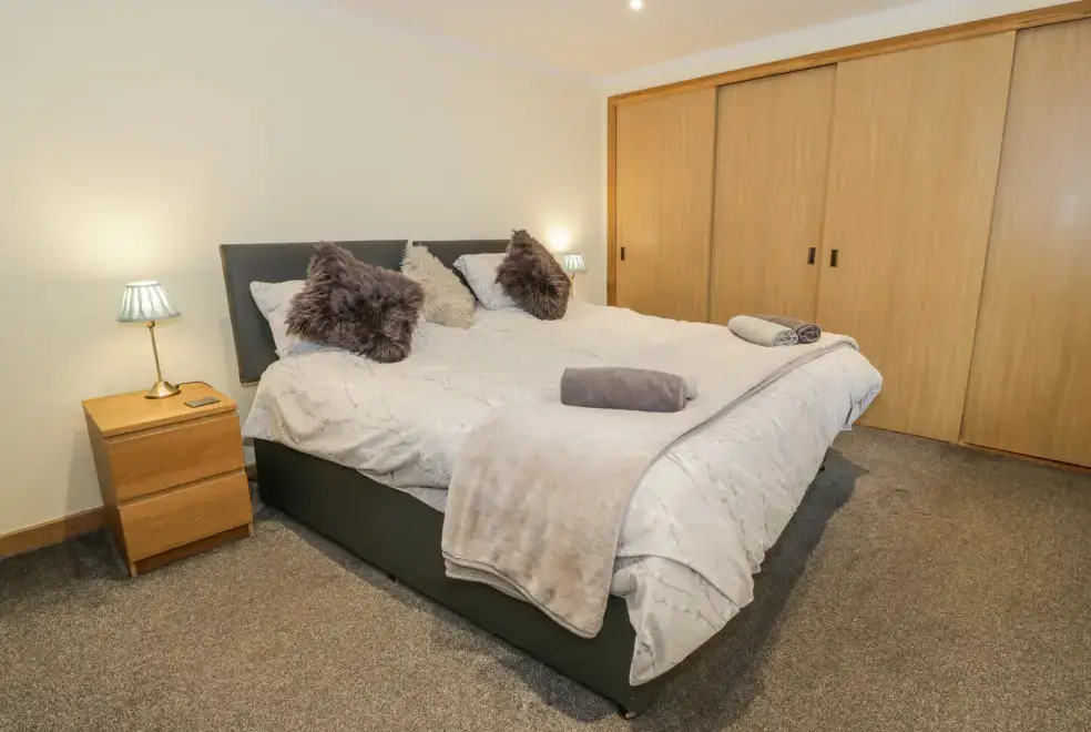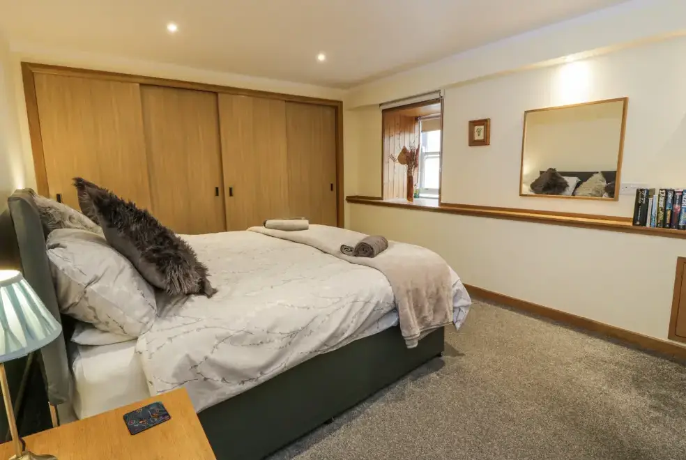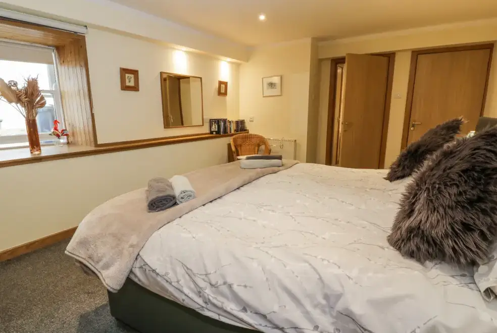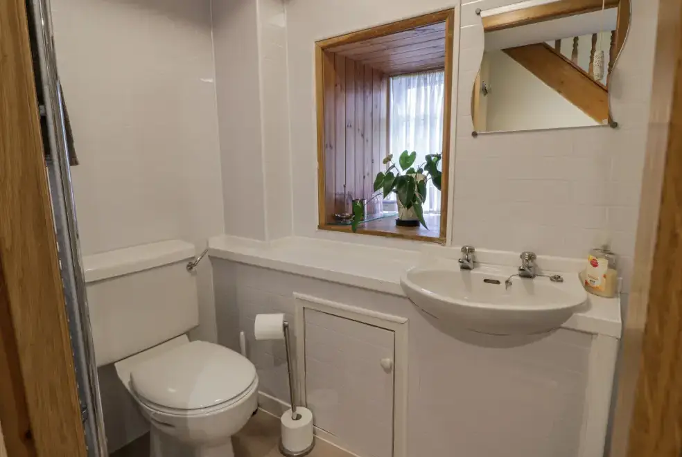 This charming Gatehouse of Fleet cottage is thoughtfully designed to provide comfort and flexibility. The ground floor hosts a double bedroom with a Zip Link Super King bed, which can be conveniently adjusted to two singles upon request. The ground floor shower room is equipped with a shower, basin, and WC for convenience. This setup ensures a relaxing stay in the serene surroundings of Gatehouse of Fleet.
