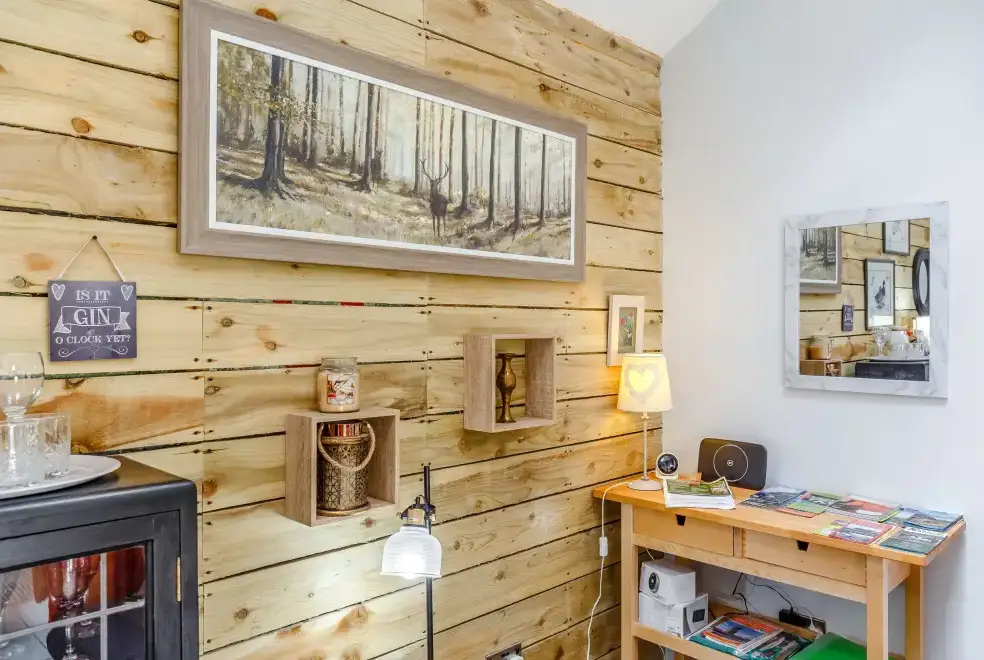 Set amidst glorious countryside, Grant Cottage boasts a welcoming sitting room with natural wood walls and two sophisticated sofas, perfect for unwinding before the TV. The kitchen/diner is fully equipped with an AGA cooker, a dishwasher, and a marble dining table, providing all the essentials for a relaxing stay. Guests can savour hearty meals and engage in lively conversations in the dining area. The garden, equipped with a fire pit and hot tub, offers a serene setting for evening relaxation.