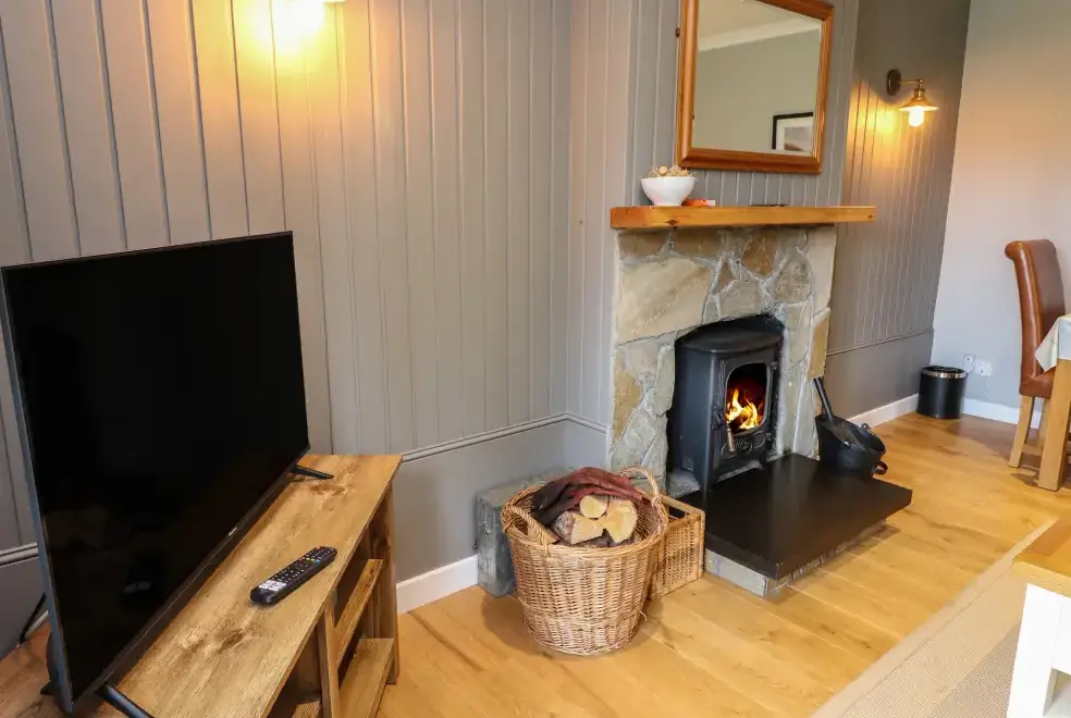 The cottage boasts a king-size bedroom with an en-suite bathroom, ideal for couples seeking comfort and luxury. Enjoy the private patio with outdoor furniture, communal garden spaces, and convenient off-road parking. Located just 5.6 miles from a shop and 4.9 miles from a pub, it offers the perfect blend of seclusion and accessibility. Two well-behaved pets are welcome, and WiFi, fuel, power, bed linen, and towels are all included in the price.