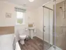 • Stylish bathroom with bath, shower cubicle, WC and basin.
