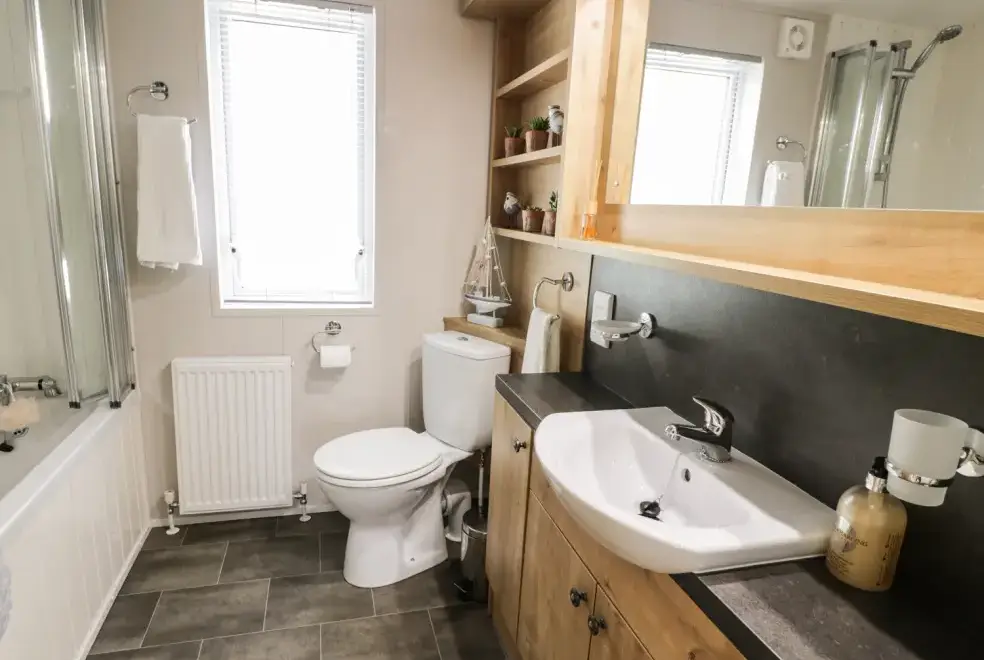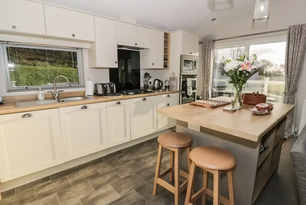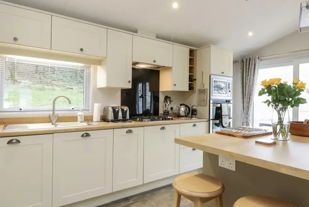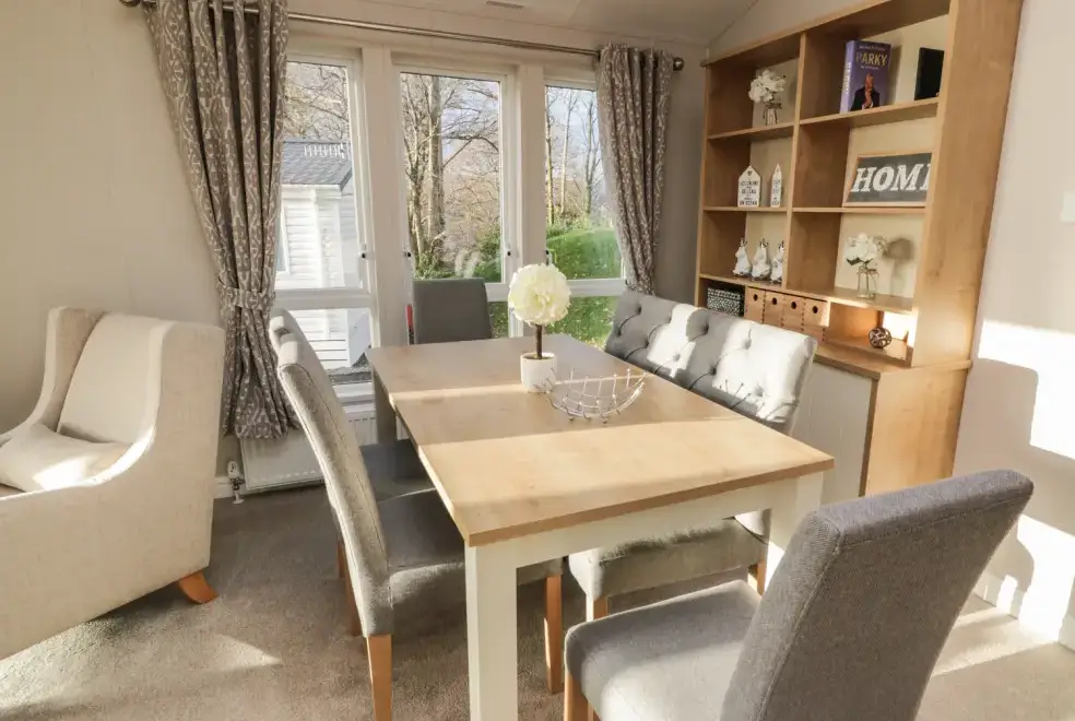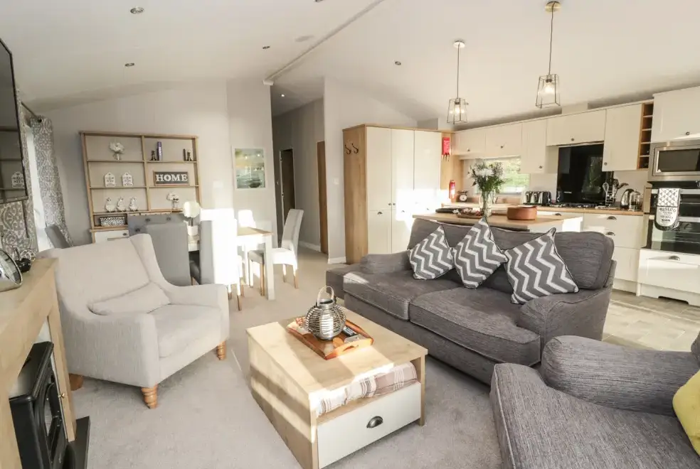 Outside, Woodstock Lodge continues to impress with a sumptuous hot tub and a deck perfect for relaxing with a favourite drink while watching the breathtaking sunsets over the Firth of Clyde. During the holiday park’s open season, guests have access to a wealth of amenities, including an indoor heated pool, sauna, bar, restaurant with evening entertainment, children’s clubs, and more. The convenience store, laundrette, and café with outdoor seating areas offering spectacular views further enhance your stay. The coastal village of Wemyss Bay serves as a gateway to the west coast of Scotland and offers easy access to both scenic and urban attractions.