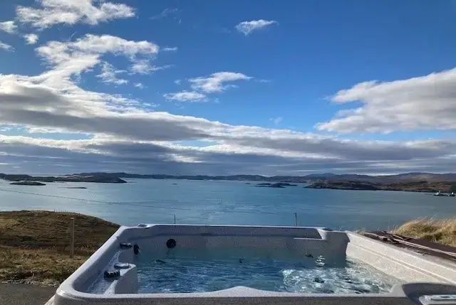 Located close to Tarbert on the Isle of Harris, Braemore Cottage is ideal for families or couples seeking a memorable holiday in the Outer Hebrides. The spacious open-plan living area with a woodburning stove offers a warm and inviting atmosphere, perfect for quality time with loved ones. The well-equipped kitchen allows guests to prepare delicious meals, utilising the local produce available. Stylish patio doors open to stunning Hebridean views, and the luxurious hot tub offers a unique way to soak up the seascape.