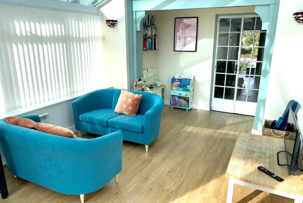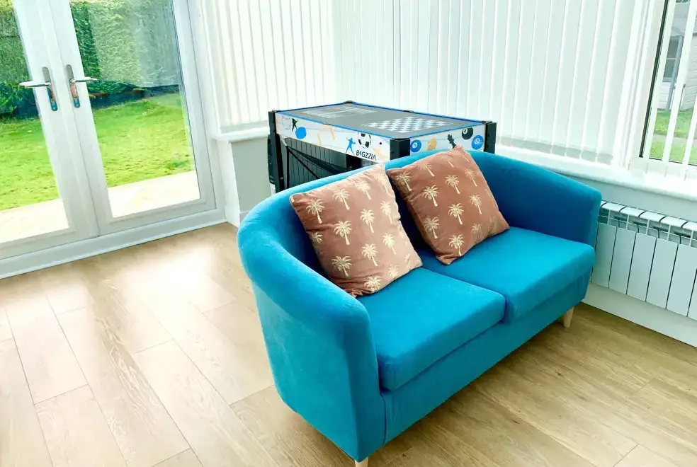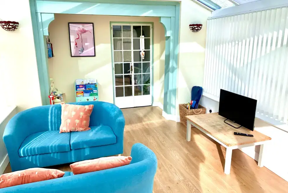 Positioned near the historic coastal town of Amlwch on the Isle of Anglesey, Monarfon boasts a breathtaking contemporary interior. The grand dining table in the kitchen/diner invites guests to share stories of their day, while the sitting room, adorned with elegant velour sofas, offers a cosy atmosphere with natural light from a period bay window. The woodburning stove adds warmth on cooler evenings. Step outside to unwind in the hot tub, or let children enjoy a movie marathon in the snug conservatory. The ground-floor double bedroom, complete with an en-suite shower, is perfect for those with limited mobility.