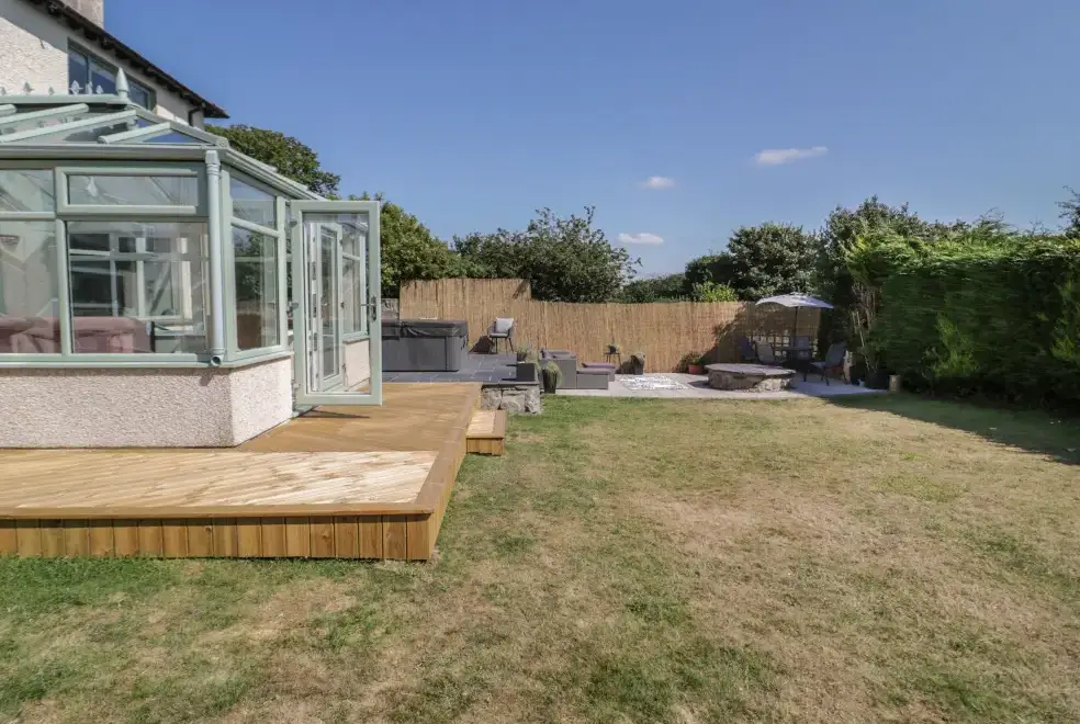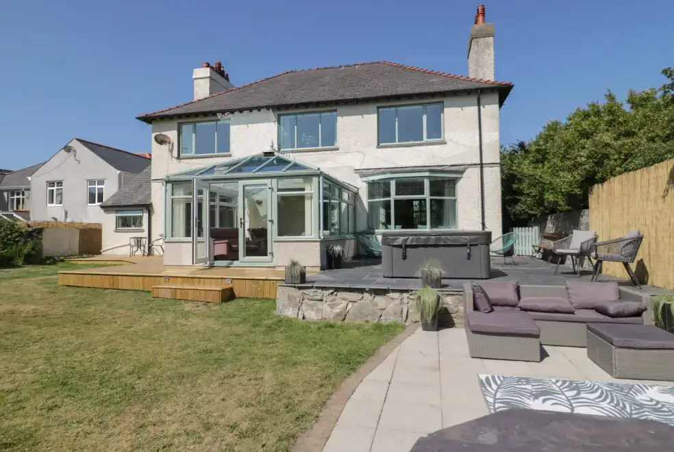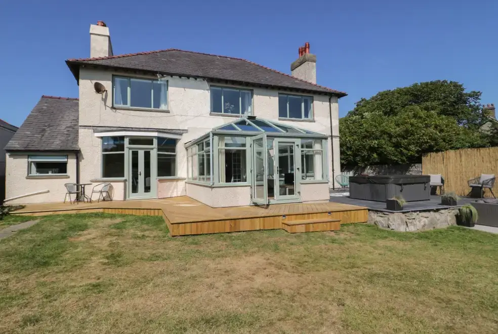 Monarfon is an exceptional detached holiday home located in Amlwch, Anglesey. This property accommodates up to 11 guests with five bedrooms, including two doubles with en-suite showers and a ground-floor double with en-suite facilities, alongside a double and a triple room. Guests can enjoy a bathroom, cloakroom, kitchen/diner, sitting room with a woodburning stove, and a conservatory. The spacious outdoor area offers ample off-road parking and an enclosed garden complete with a lawn, patio, hot tub, and furniture, making it an ideal setting for group celebrations. During Christmas week bookings, the property is festively decorated with a tree and ornaments.