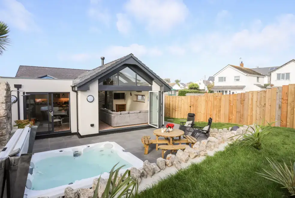 The Herun boasts beautifully-presented bedrooms, each with its own en-suite. The king-size and twin rooms feature shower rooms, while the adult bunks come with a bathroom. Outside, enjoy the hot tub as you watch the sunset, or dine alfresco with a barbecue. The village of Rhosneigr offers spectacular cliffs, sandy beaches, and is a hotspot for watersports like windsurfing and kitesurfing.