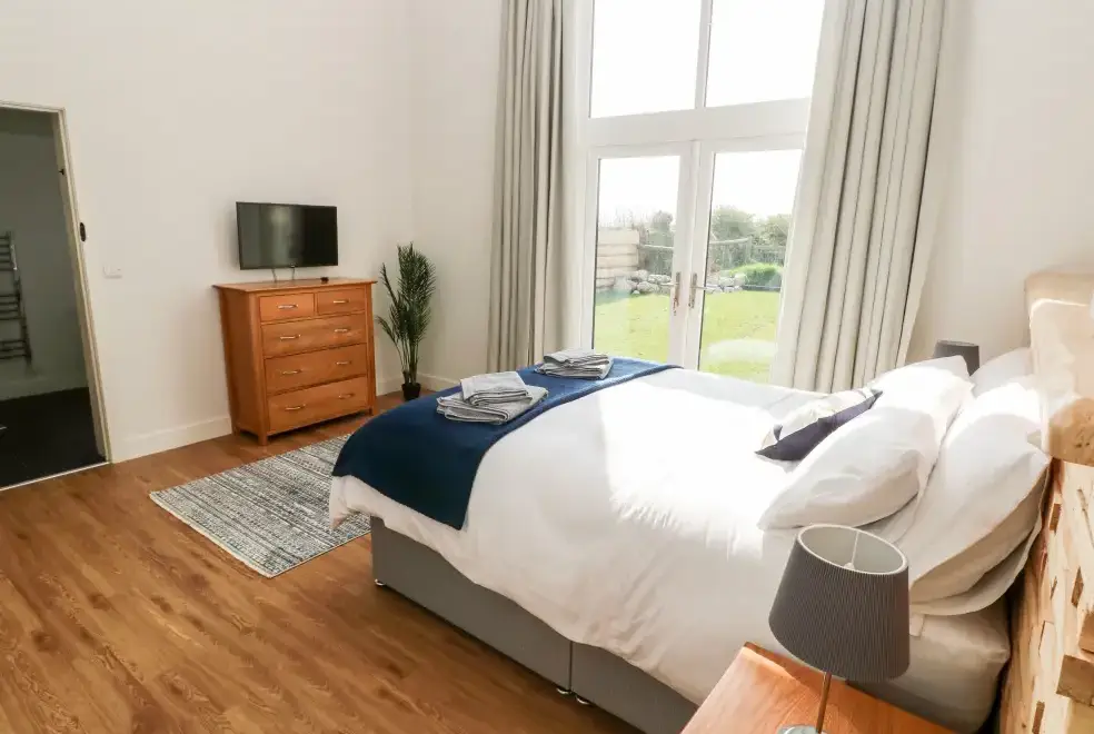 Set in the scenic outskirts of Efailwen, Glowty Brynbedw is a contemporary barn conversion, perfect for group celebrations or getaways, accommodating up to four guests. The property provides breathtaking countryside views and easy access to local attractions, such as Pembrokeshire Llamas, Heatherton World of Activities, and Scolton Park. Outdoor enthusiasts will love the nearby Preseli Hills, famous for walking and cycling, while history buffs can explore Castell Henllys, Laugharne Castle, and Pembroke Castle.