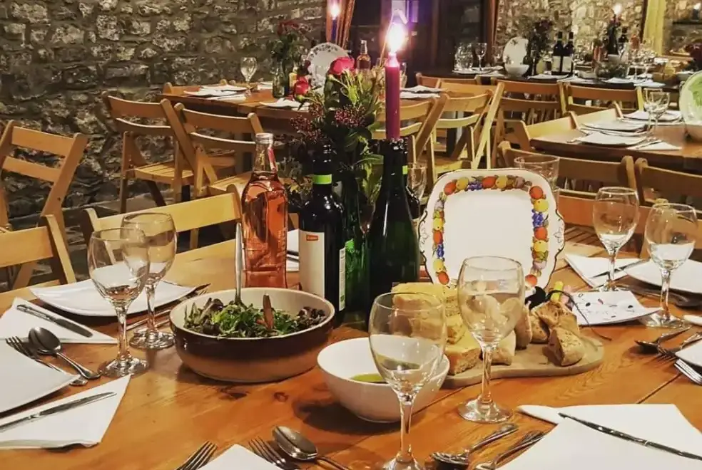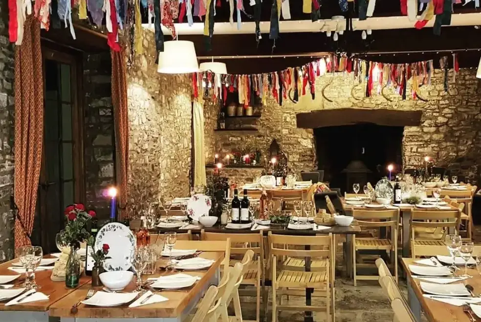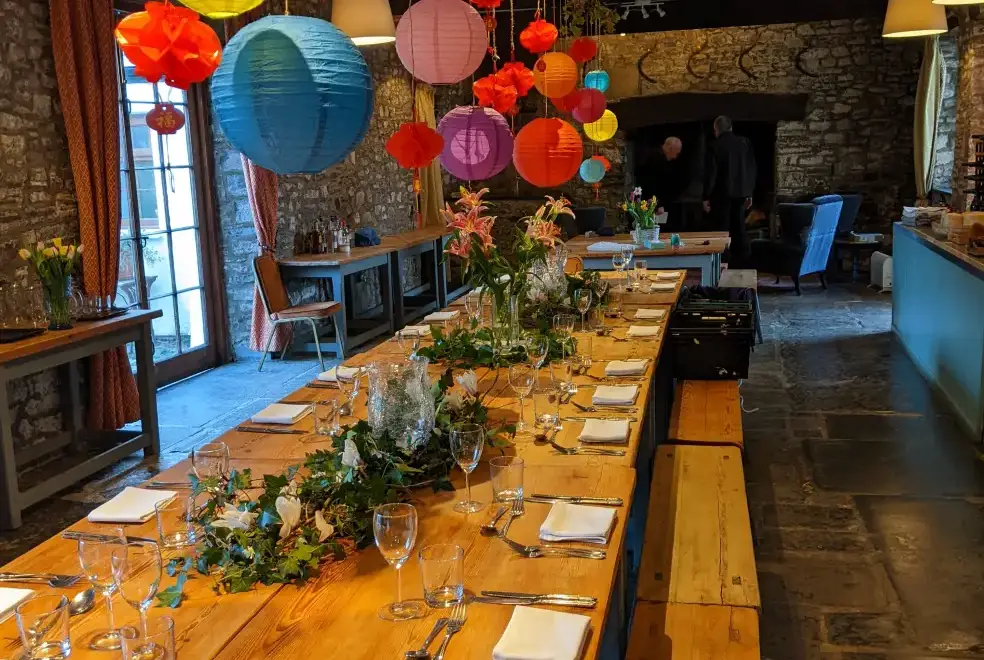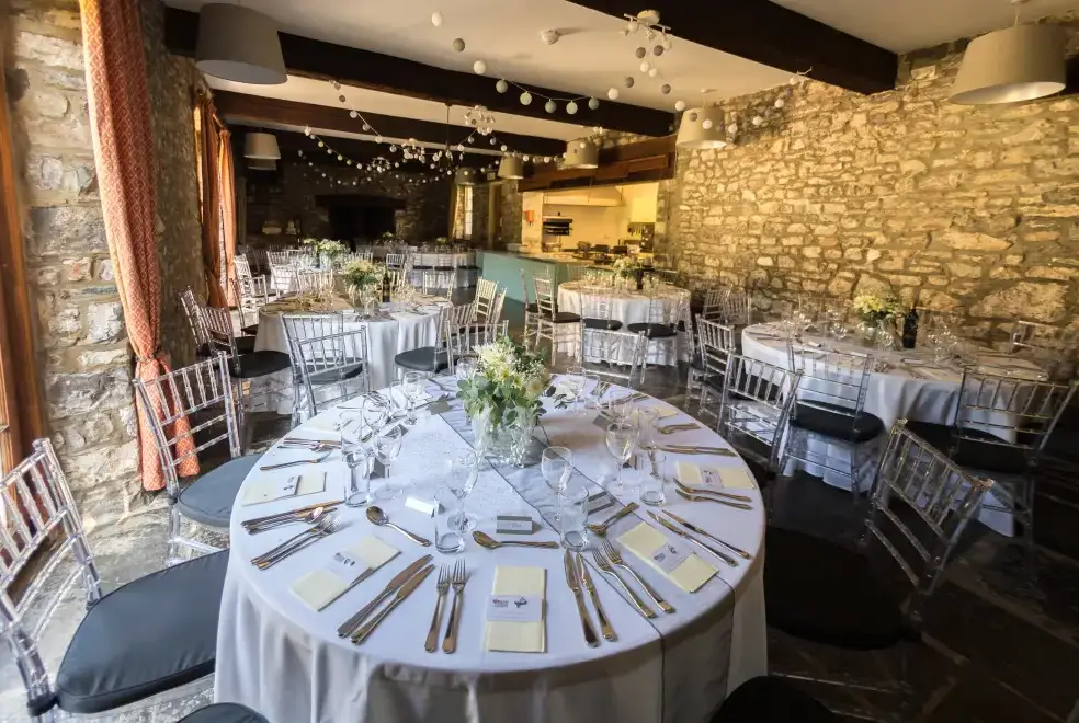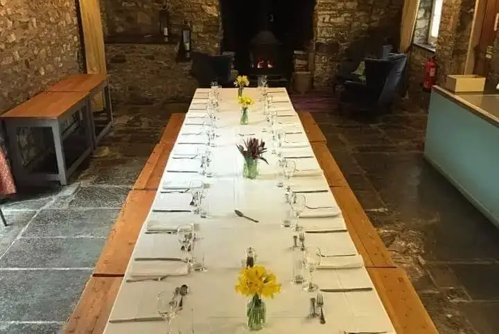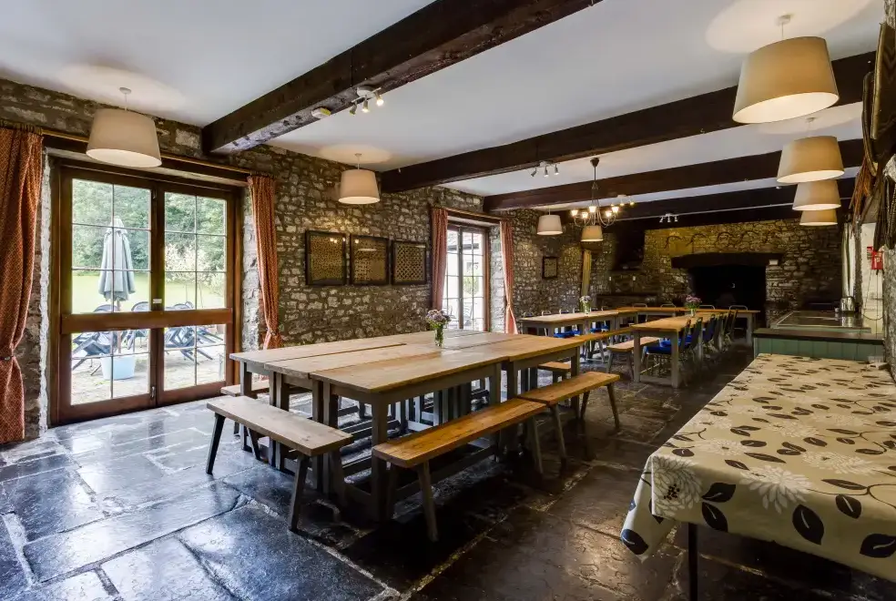 - Rustic dining room (seats 70 to 80 people), with inglenook fireplace For larger numbers of guests for events, a marquee on the back lawn can be hired for up to 100 guests.