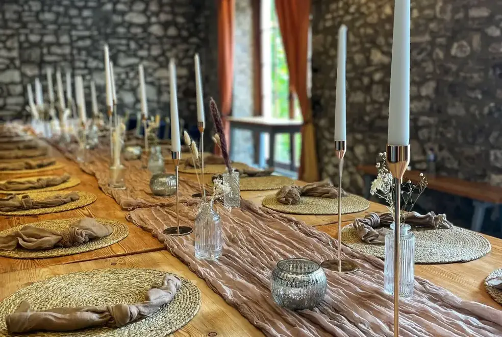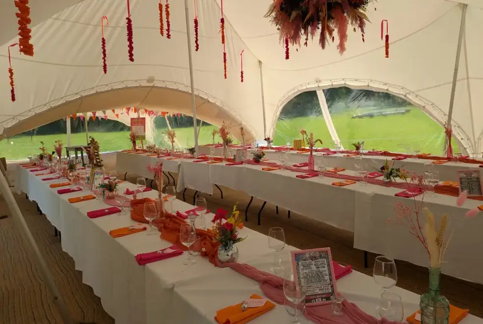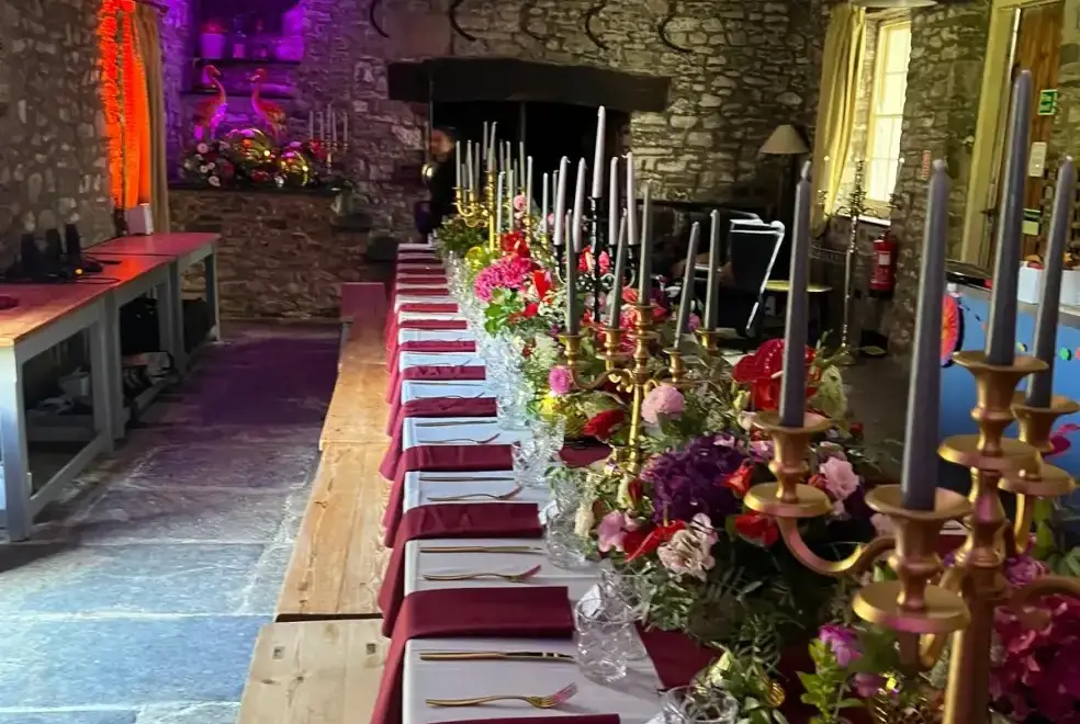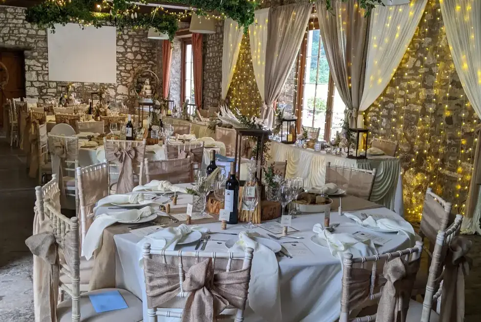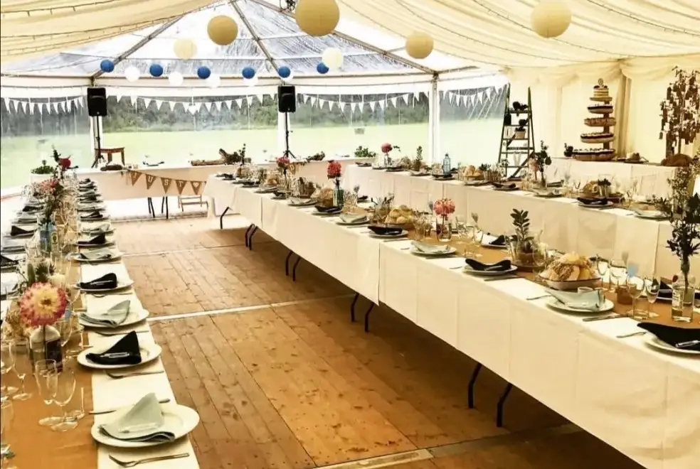 - Rustic dining room (seats 70 to 80 people), with inglenook fireplace For larger numbers of guests for events, a marquee on the back lawn can be hired for up to 100 guests.