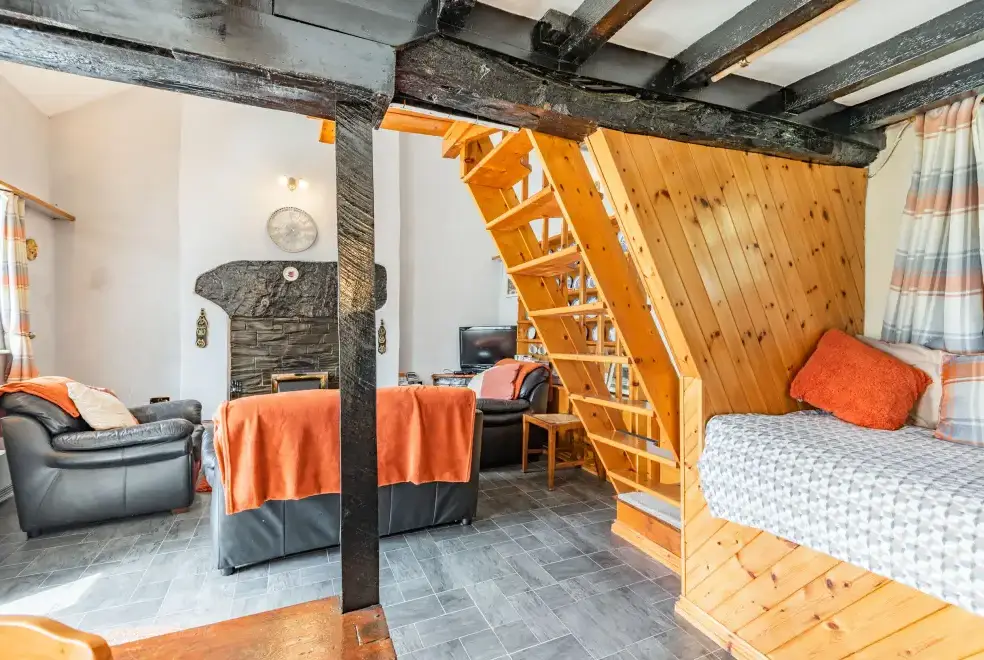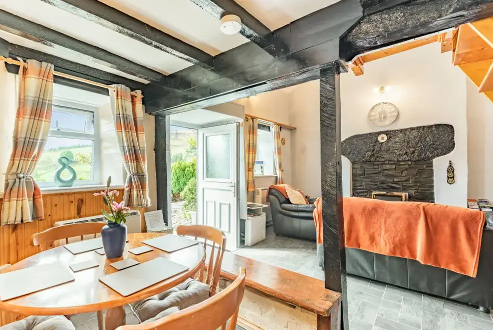 This 17th-century detached cottage in Penmachno, Snowdonia, is surrounded by fields and offers panoramic views of the mountains and valley. Furnished to a comfortable standard, the cottage exudes charm and character with exposed beams, whitewashed stone walls, and an open fire, creating a warm and homely atmosphere. Ideal for a family holiday, the cottage offers a master bedroom and a cosy attic bedroom, with the option of an additional single bed in the sitting room, making it a perfect retreat after exploring the nearby attractions.