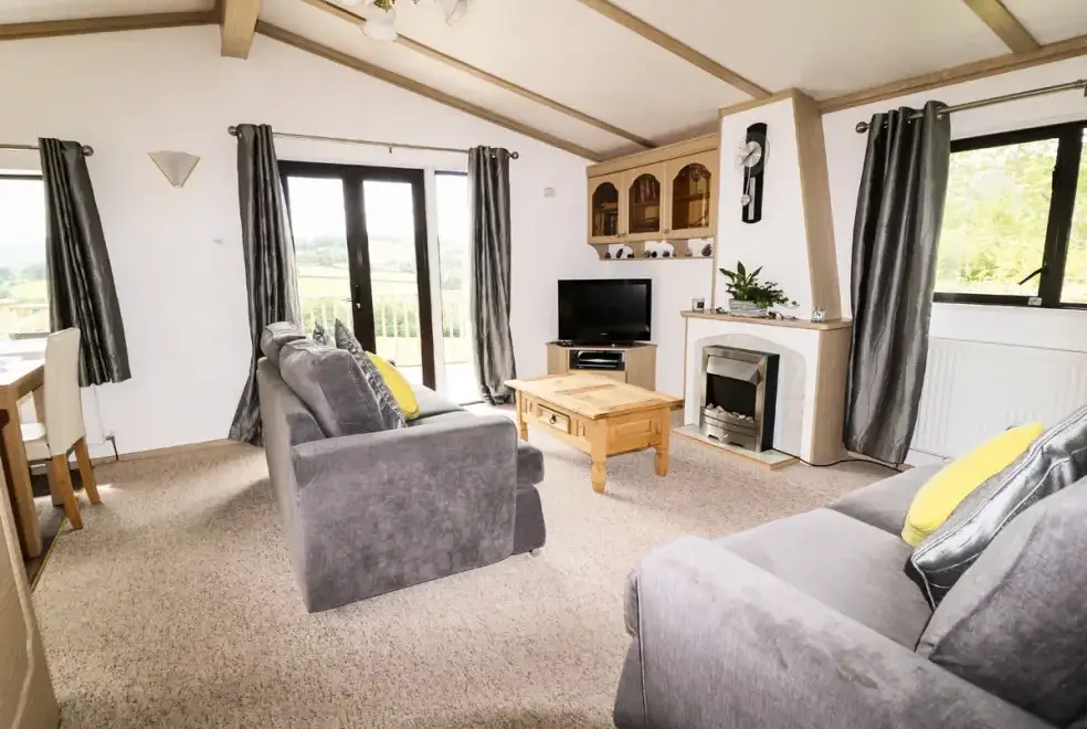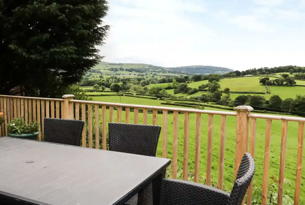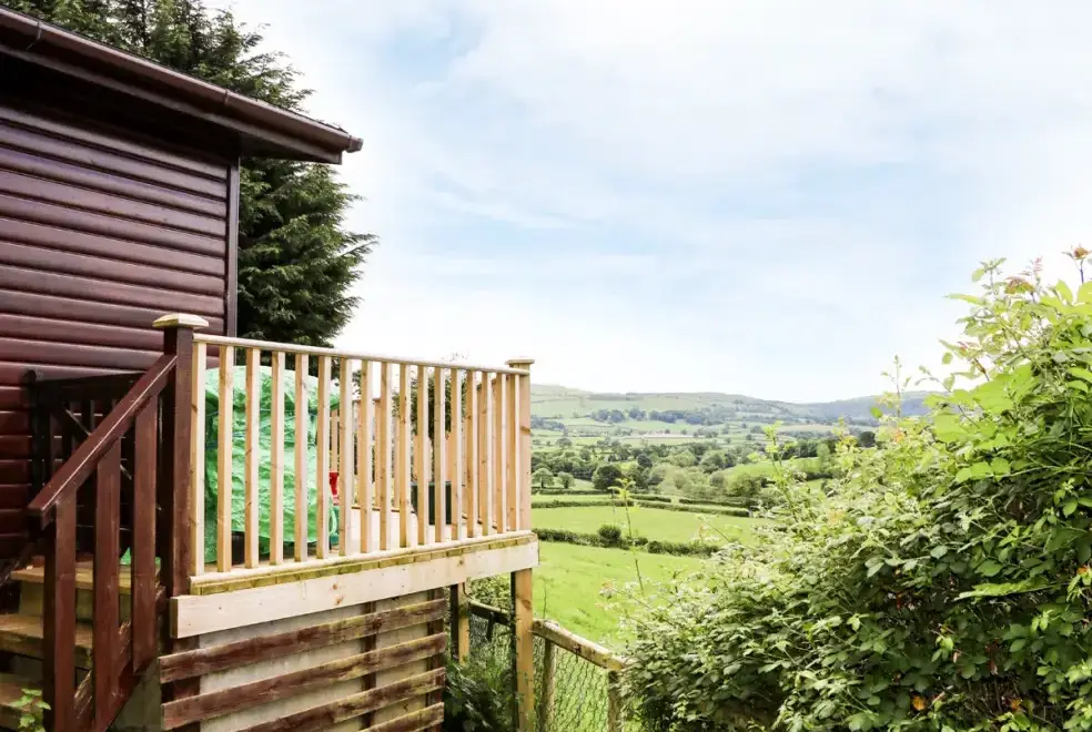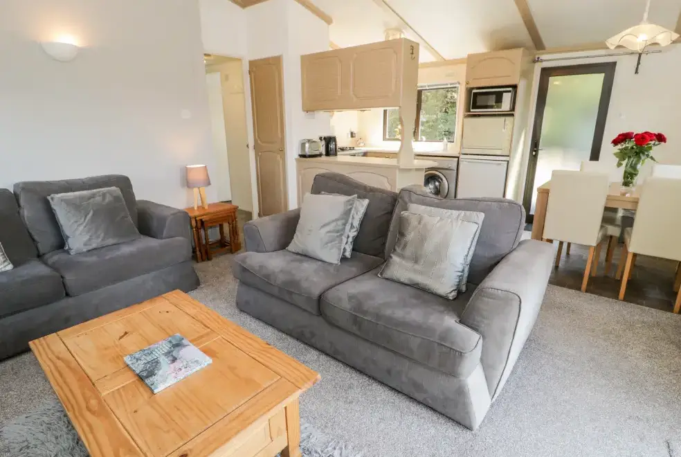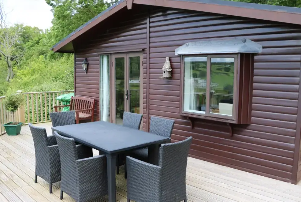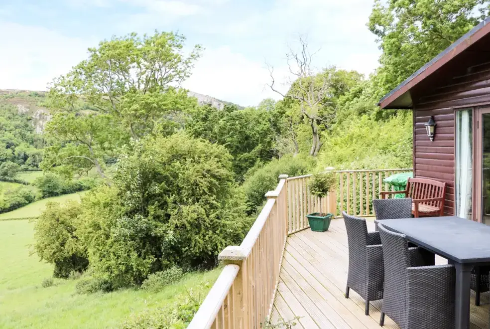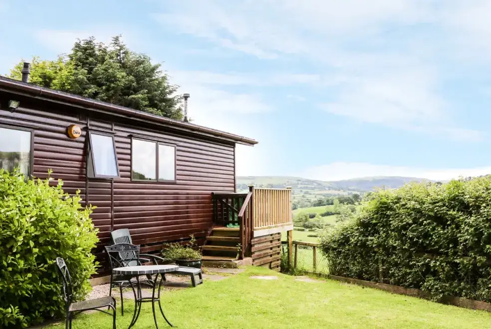 Comfortable 2 bedroom holiday lodge near Abergele with fabulous countryside viewsThis is a fantastic holiday lodge located alongside two other holiday log cabins in a country setting close to Rhyd y Foel in Conwy. Benefiting from rural views and nestled close to hills, this is an appealing place for a break away. This log cabin has 2 bedrooms and can comfortably accommodate up to 4. There is an open plan living area with a lounge, dining area and kitchen, a family shower room with WC, one double bedroom with an en-suite WC and one twin bedroom. Outside there is a fantastic outdoor space with a veranda to the front where you can sit out and drink in this sublime setting. There is even a BBQ should you wish to cook and dine al fresco.Rhyd y Foel is located in a quiet tranquil part of Wales. It is an excellent area for walking with the Clwydian Hills and Offa’s Dye trail close by. The coast is also just a short drive away from here allowing you to discover both coast and countryside on a break away. For more country and mountain scenery, the northerly edge of Snowdonia National Park lies around 14 miles to the west of Rhyd y Foel.