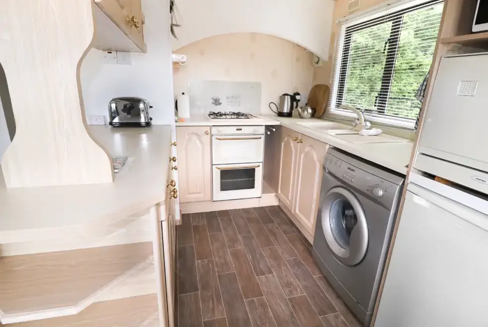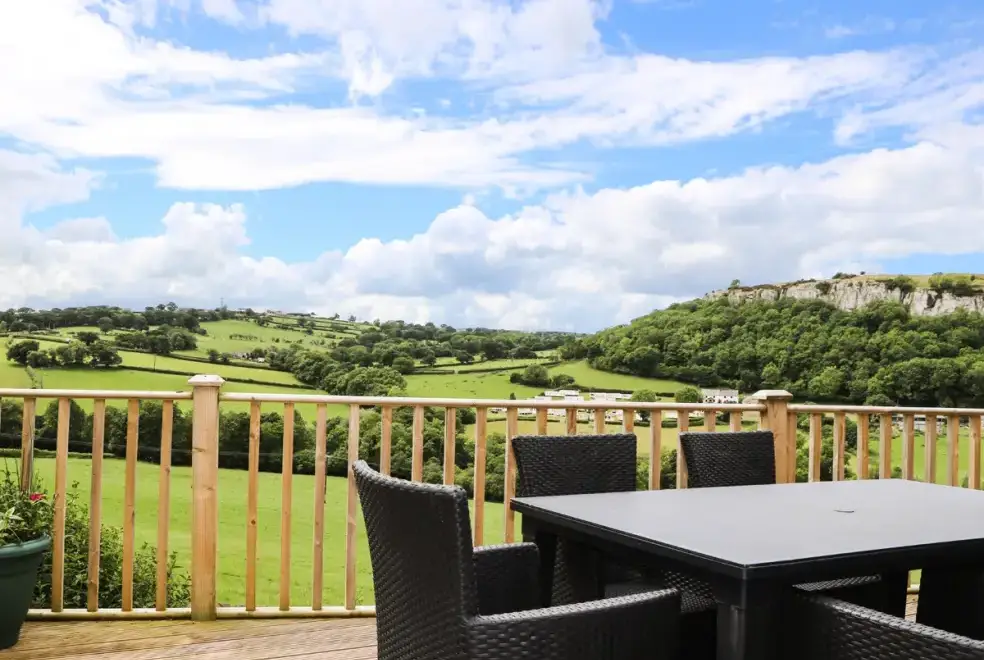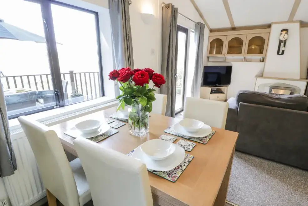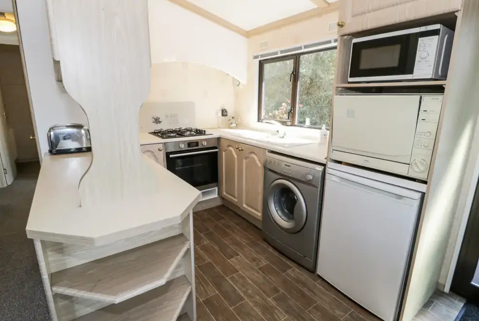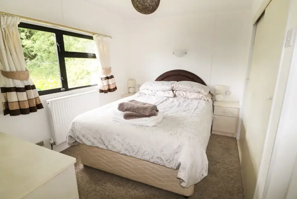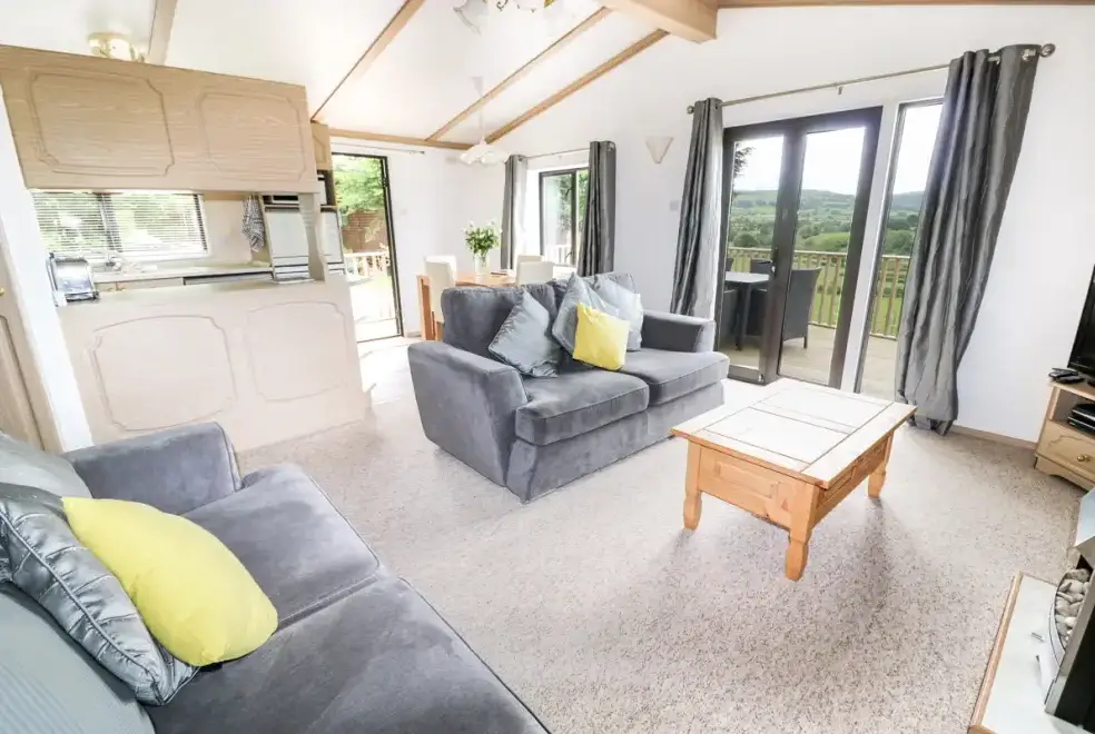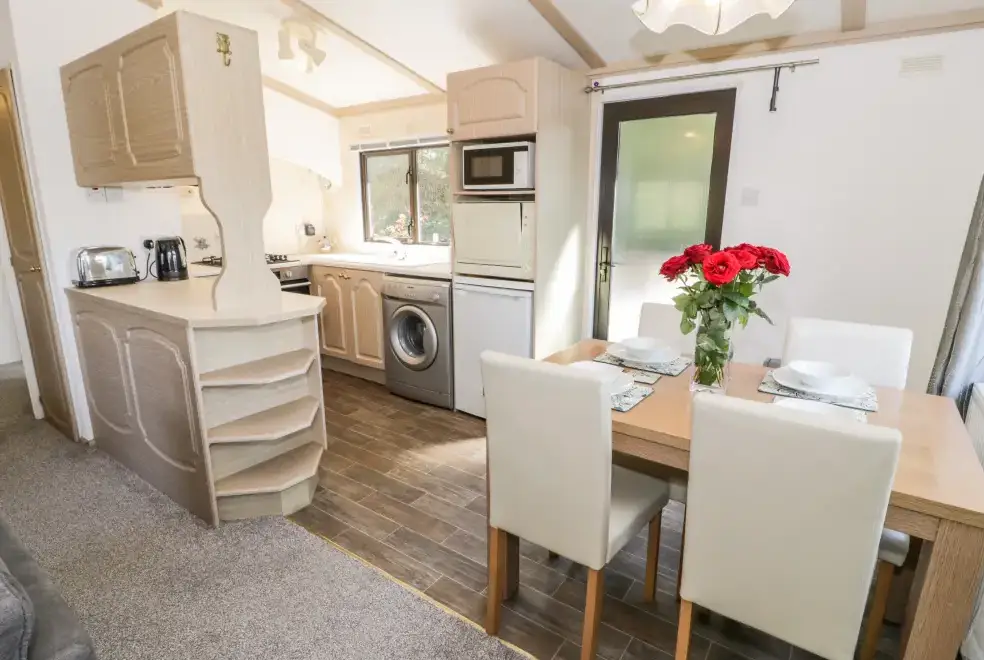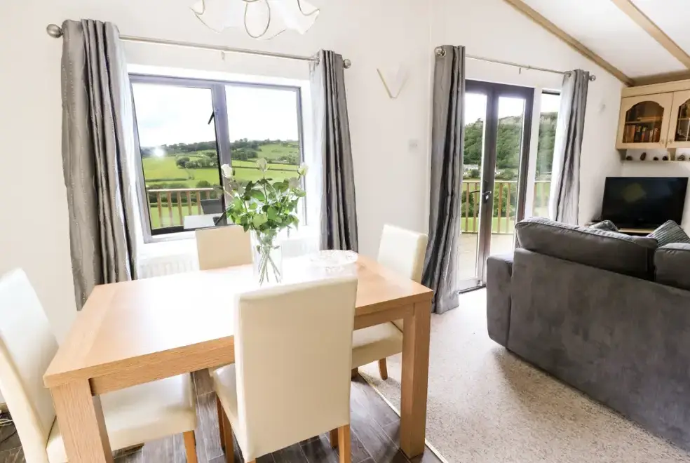 Comfortable 2 bedroom holiday lodge near Abergele with fabulous countryside viewsThis is a fantastic holiday lodge located alongside two other holiday log cabins in a country setting close to Rhyd y Foel in Conwy. Benefiting from rural views and nestled close to hills, this is an appealing place for a break away. This log cabin has 2 bedrooms and can comfortably accommodate up to 4. There is an open plan living area with a lounge, dining area and kitchen, a family shower room with WC, one double bedroom with an en-suite WC and one twin bedroom. Outside there is a fantastic outdoor space with a veranda to the front where you can sit out and drink in this sublime setting. There is even a BBQ should you wish to cook and dine al fresco.Rhyd y Foel is located in a quiet tranquil part of Wales. It is an excellent area for walking with the Clwydian Hills and Offa’s Dye trail close by. The coast is also just a short drive away from here allowing you to discover both coast and countryside on a break away. For more country and mountain scenery, the northerly edge of Snowdonia National Park lies around 14 miles to the west of Rhyd y Foel.