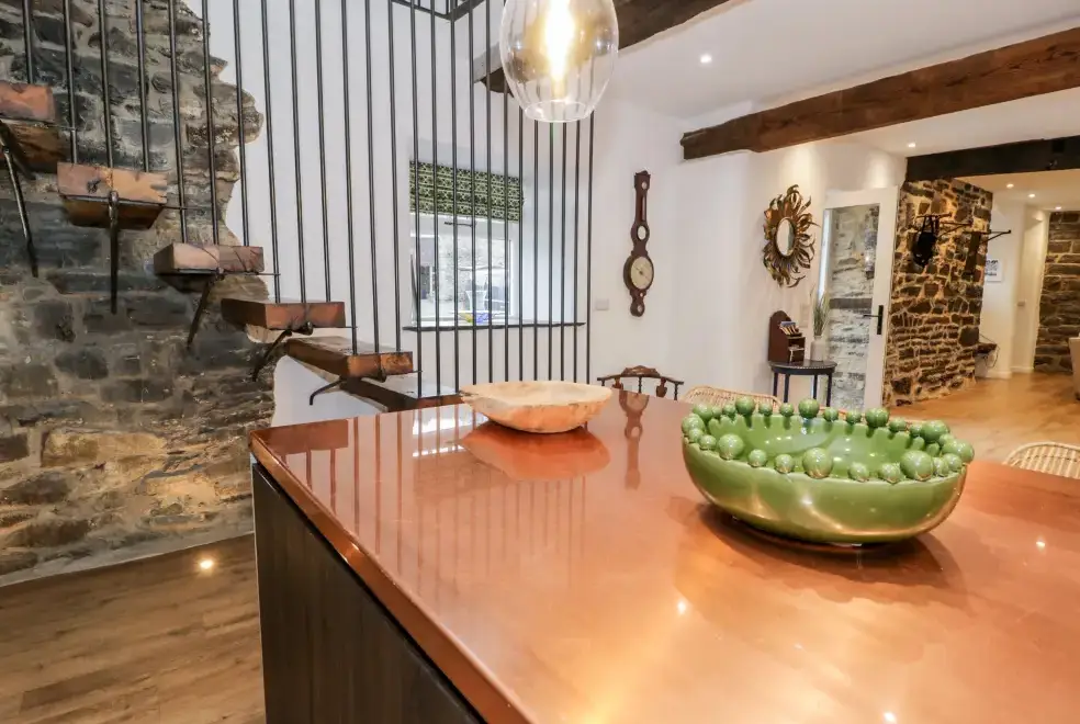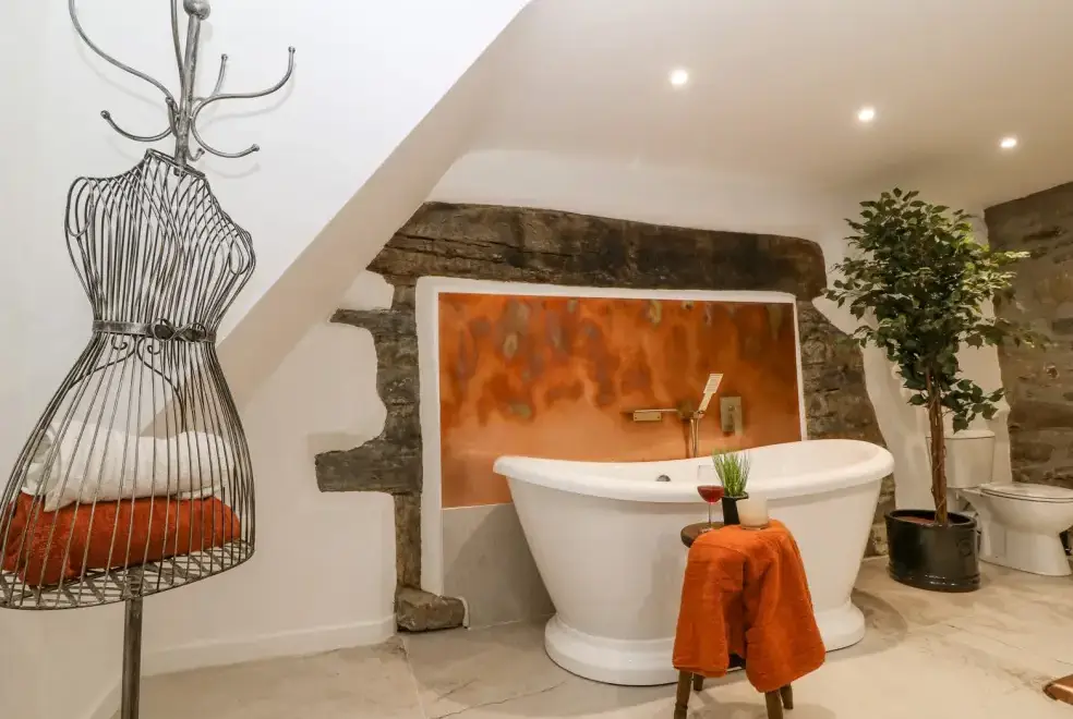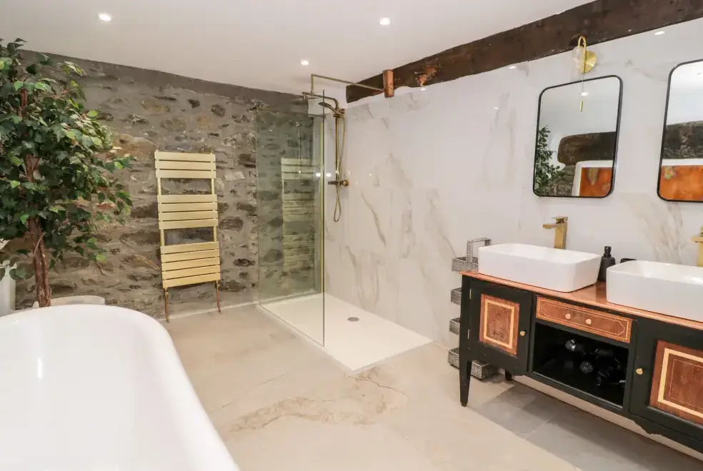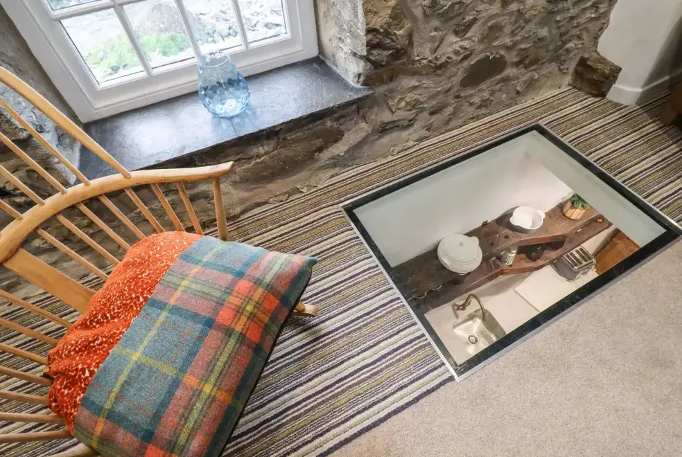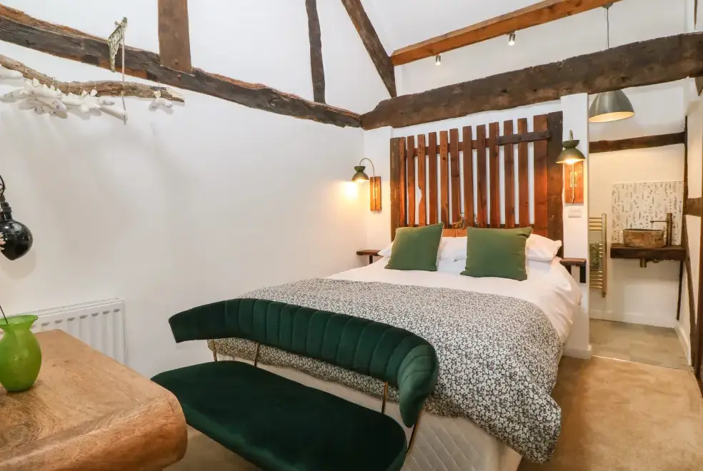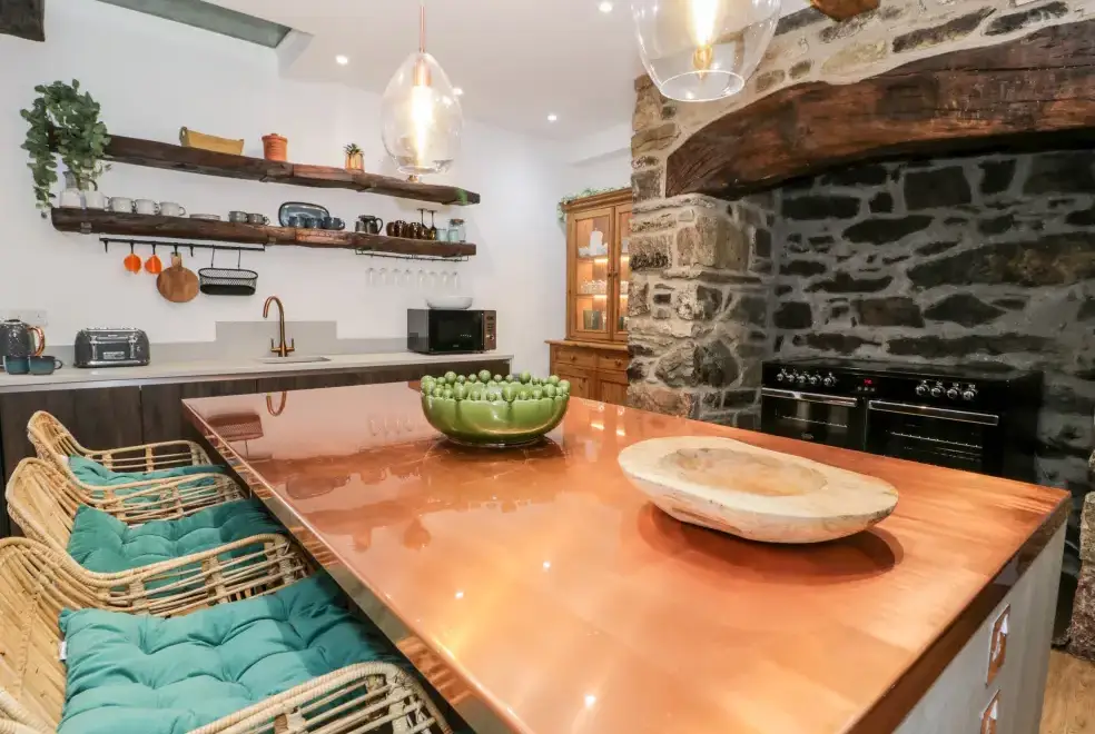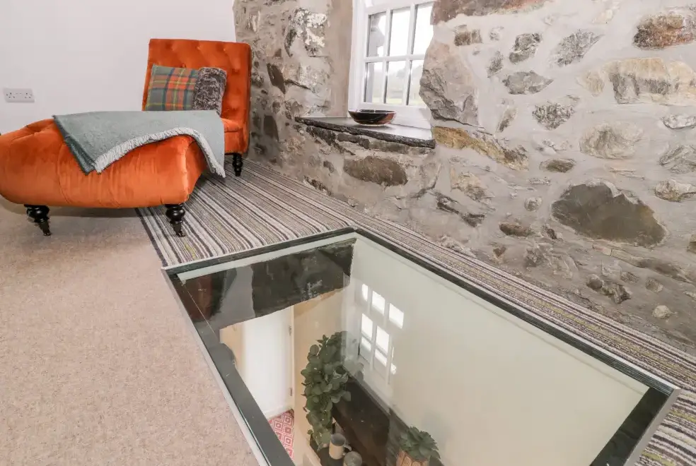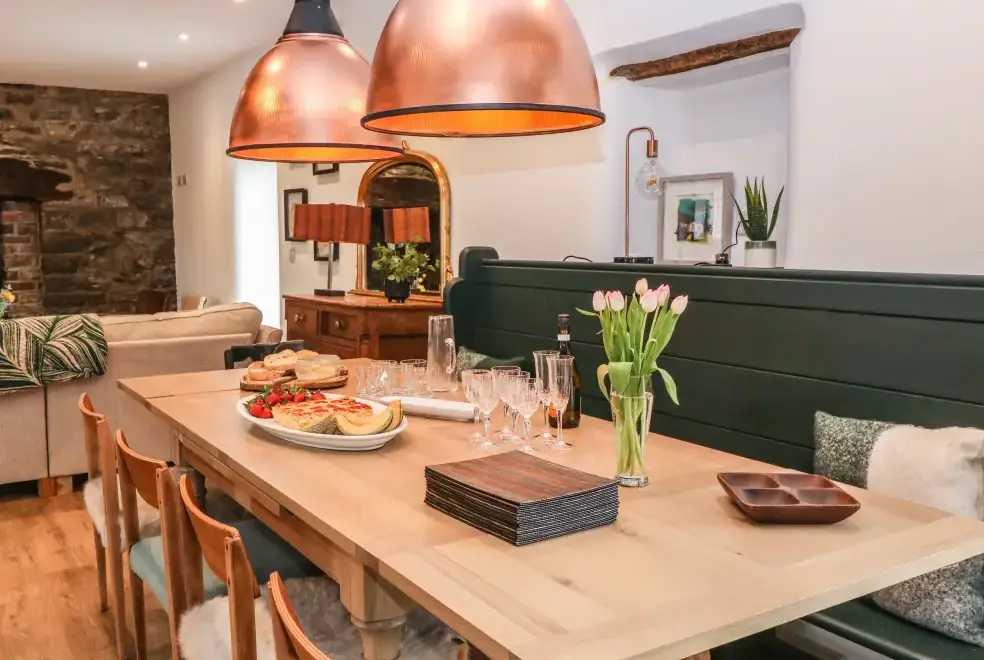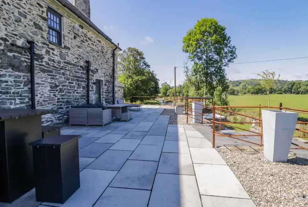 Set on a working farm, Plas Glan Yr Afon is a 16th-century Grade II listed building that beautifully blends historic charm with contemporary comforts. Highlights include an inglenook fireplace and original timber features. The open-plan living space, with its copper worktop island and pew-seat dining table, is perfect for family gatherings. Bedrooms are tastefully decorated, each with unique features like reupholstered French beds and stone sinks. The property’s garden and river views add to its serene appeal.