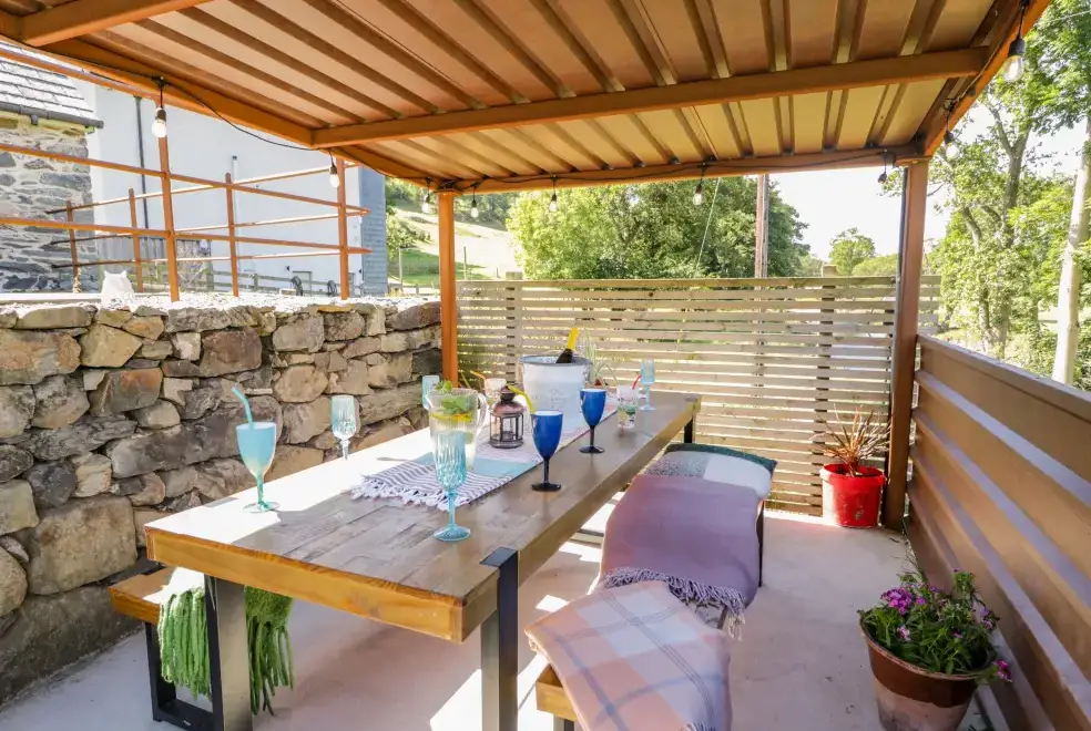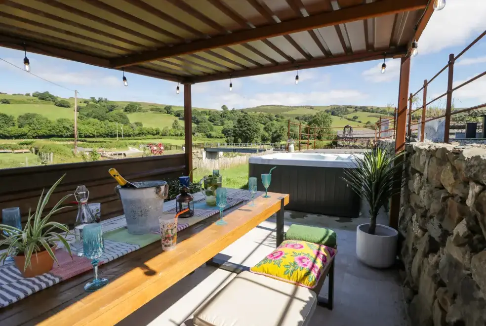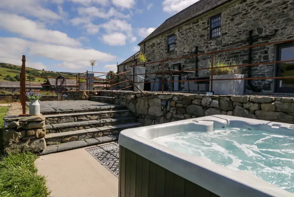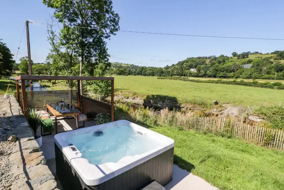 Plas Glan Yr Afon provides modern amenities to ensure a comfortable stay. Enjoy an electric Range-style cooker, microwave, fridge/freezer, washing machine, tumble dryer, dishwasher, wine cooler, and hairdryer. For entertainment, the property offers a Smart TV and WiFi. Outside, guests can take advantage of ample off-road parking, a garden with a patio, furniture, pergola, and a luxurious hot tub. All fuel, power, bed linen, and towels are included in the rent. Please note, this is a pet-free and smoke-free property.