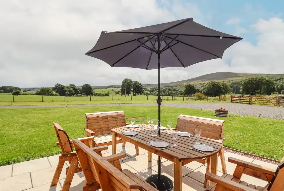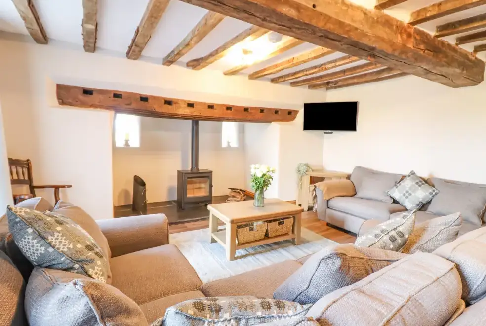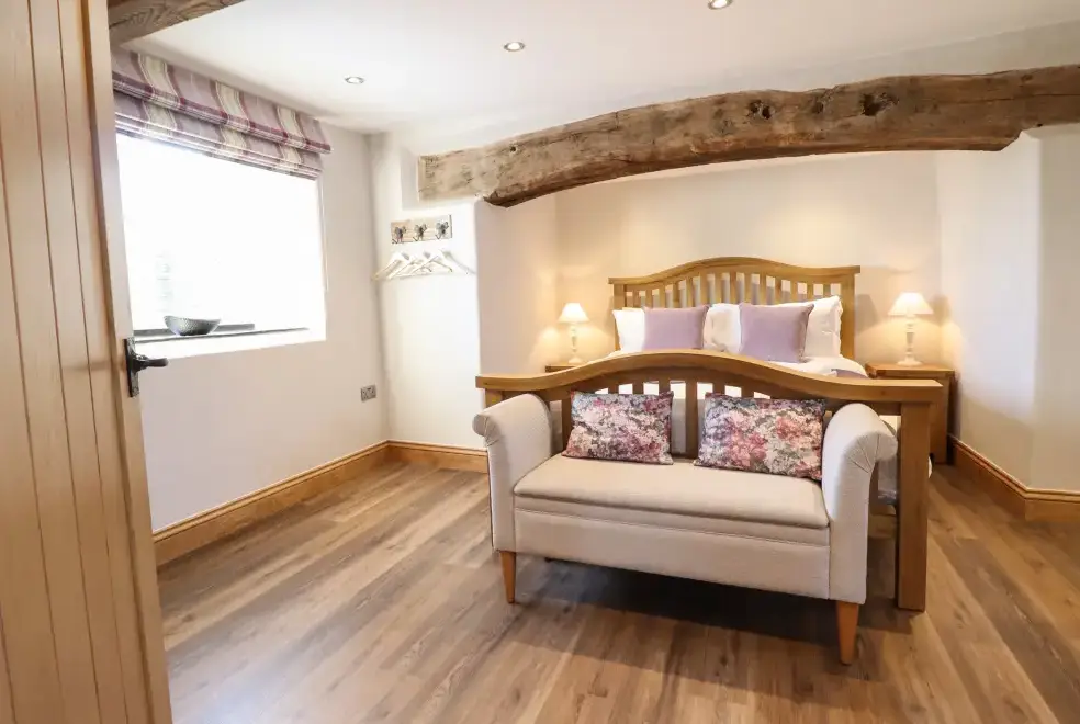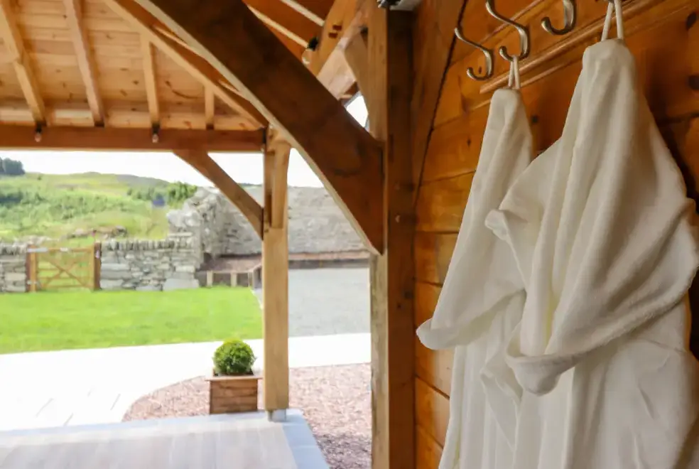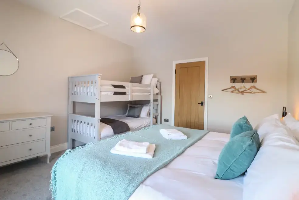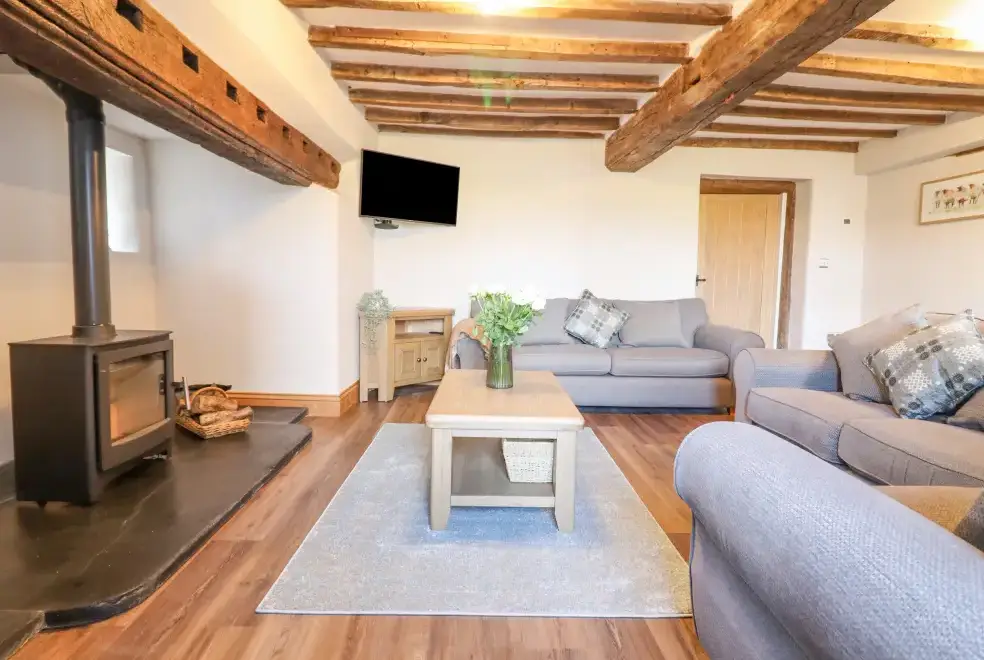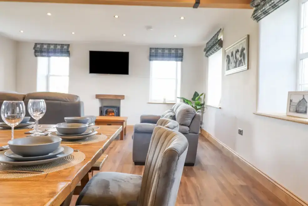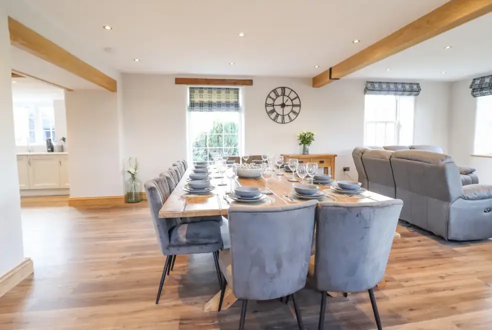 Farmhouse offers a luxurious open-plan living area complete with a modern kitchen, dining, and sitting area equipped with an electric Rangemaster oven, hob, microwave, dual fridge/freezer, dishwasher, and Smart TV. Enjoy the warmth of a woodburning stove or relax in the separate sitting room, both featuring Smart TVs. Additional amenities include an external utility room with a washing machine and tumble dryer, and an external games room with a pool table. A convenient cloakroom is also available.