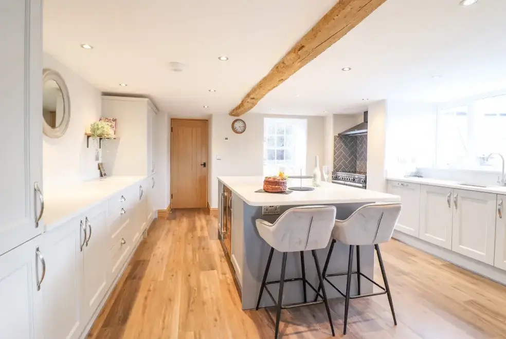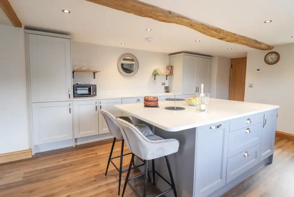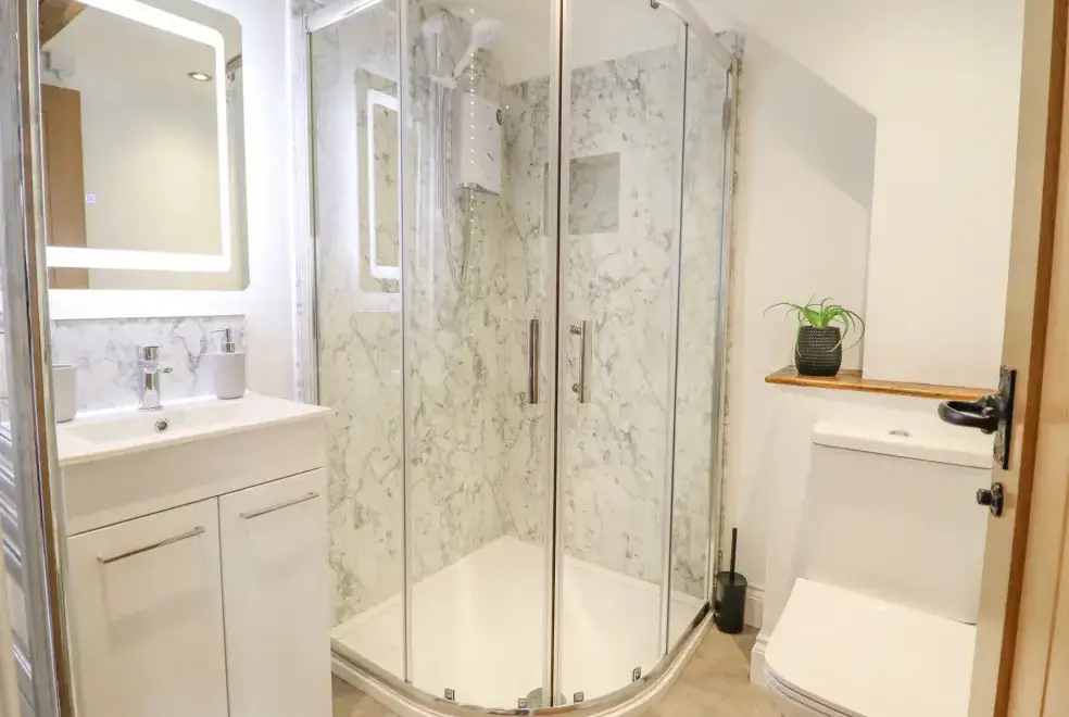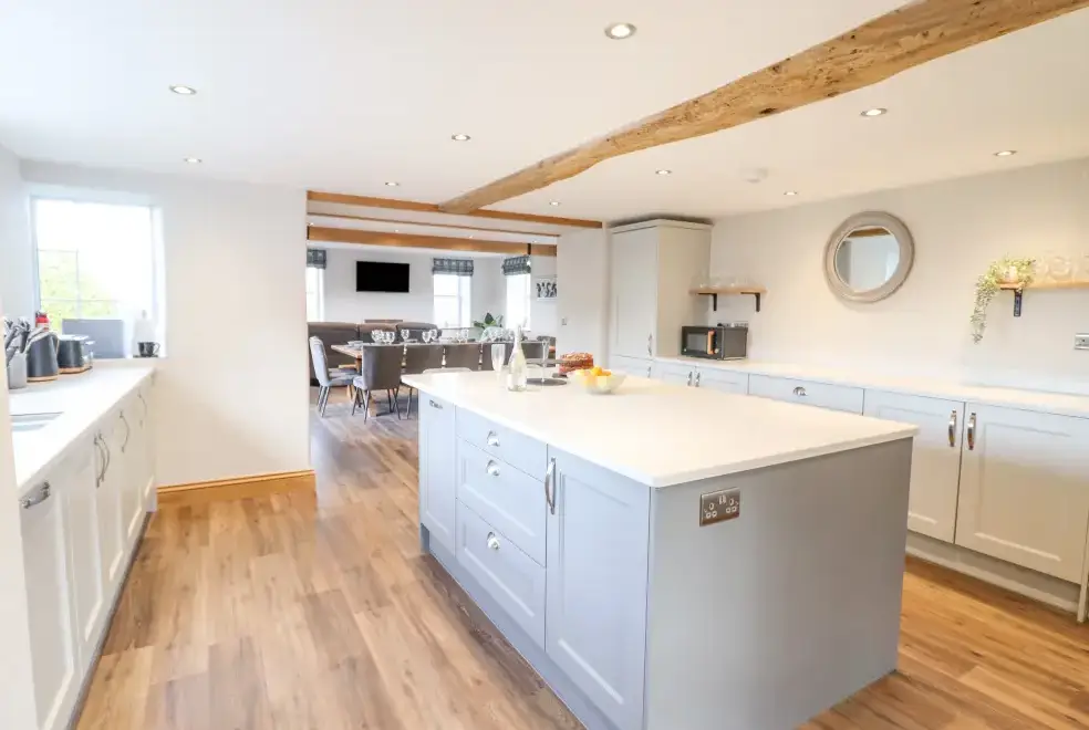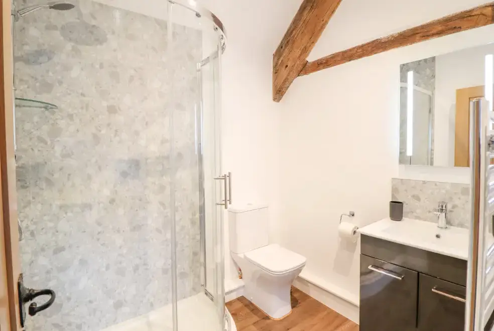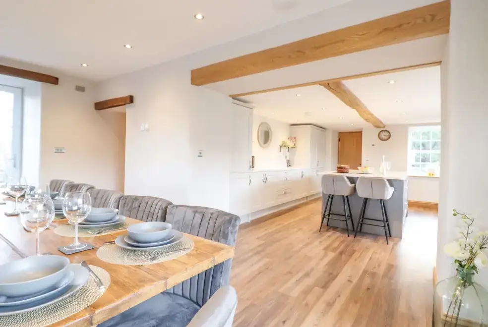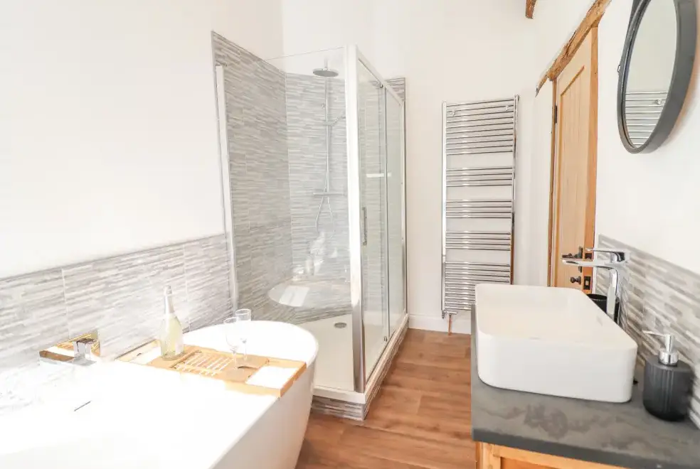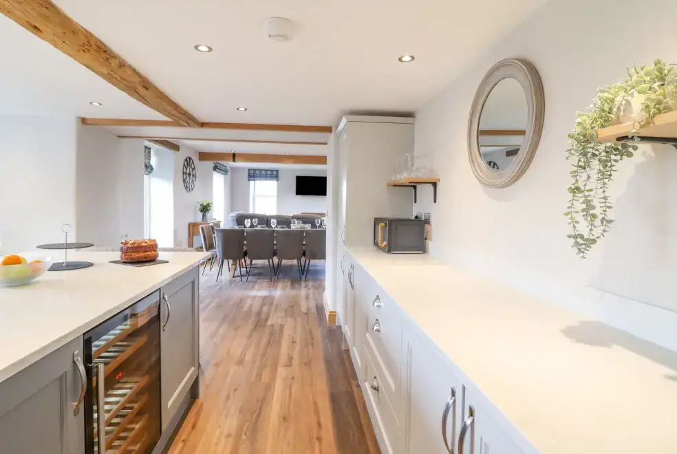 Farmhouse offers a luxurious open-plan living area complete with a modern kitchen, dining, and sitting area equipped with an electric Rangemaster oven, hob, microwave, dual fridge/freezer, dishwasher, and Smart TV. Enjoy the warmth of a woodburning stove or relax in the separate sitting room, both featuring Smart TVs. Additional amenities include an external utility room with a washing machine and tumble dryer, and an external games room with a pool table. A convenient cloakroom is also available.