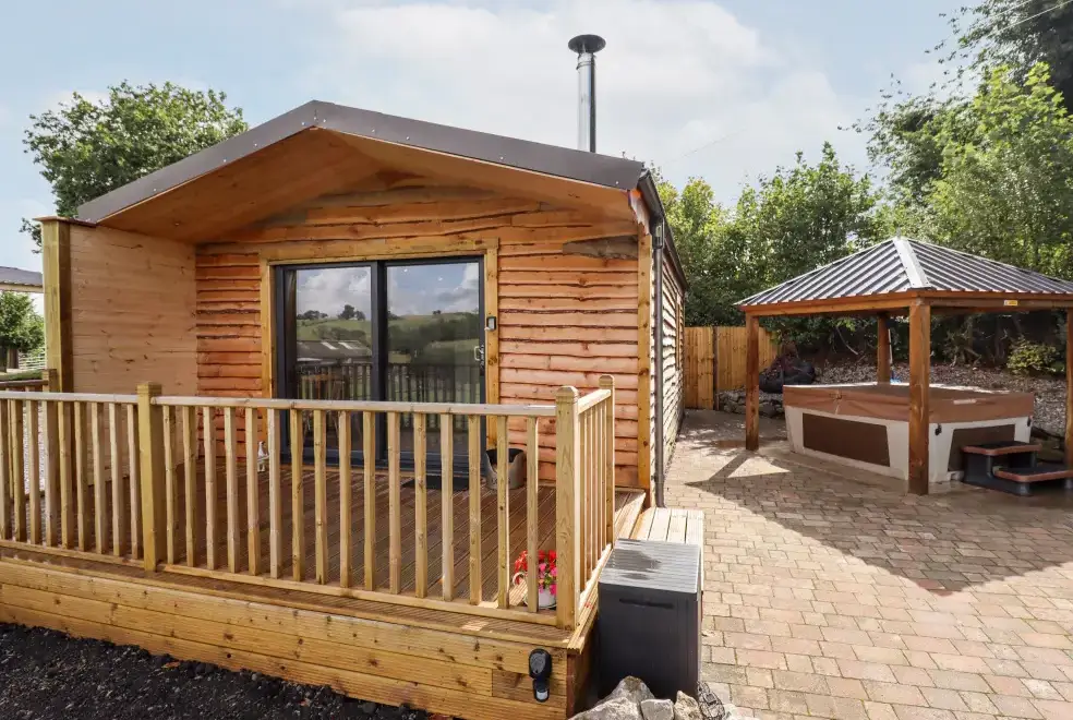 Romantic Stylish Cabin with Country Views and Private Hot Tub near Cyffylliog. North Wales