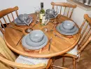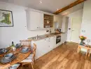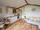 Enjoy beautiful views of the countryside from the comfort of the open-plan kitchen, dining and sitting areas. Rustle up a meal at the end of the day on the electric cooker or put a ready meal in the microwave, be lazy you're on holiday. Later put the crockery in the dishwasher than settle down with a beer in front of the Smart TV and enjoy the warmth of the woodburning stove, or better still take a soak in the hot tub under the stars, there's nobody watching.