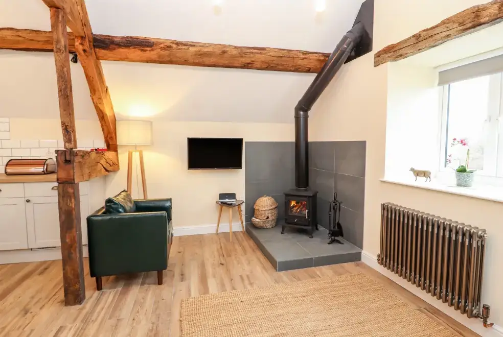 Stabl is a charming detached cottage nestled in the tranquil village of Moelfre, near Llanrhaeadr-Ym-Mochnant in Powys. This delightful holiday home offers reverse level accommodation with a ground-floor king-size bedroom, featuring an en-suite bathroom equipped with a bath, shower, basin, and WC. The first-floor open-plan living space includes a fully-fitted kitchen, dining area, and a cosy sitting area with a woodburning stove and a double sofa bed. Guests can enjoy modern amenities such as a Smart TV with Netflix and WiFi, alongside electric and oil central heating.