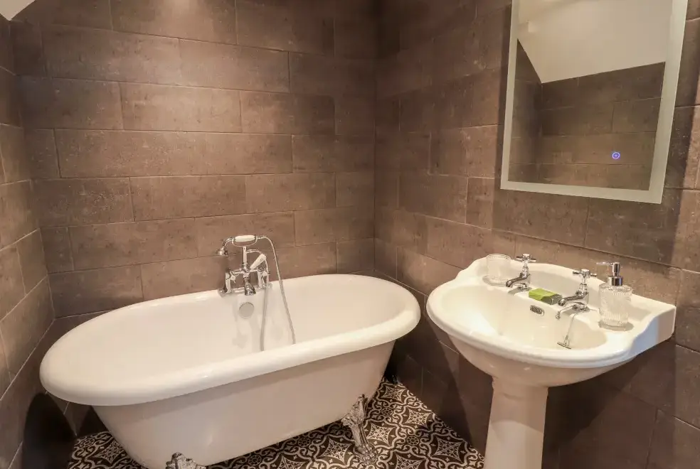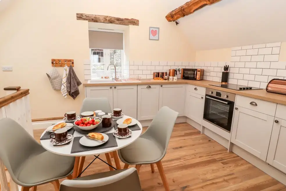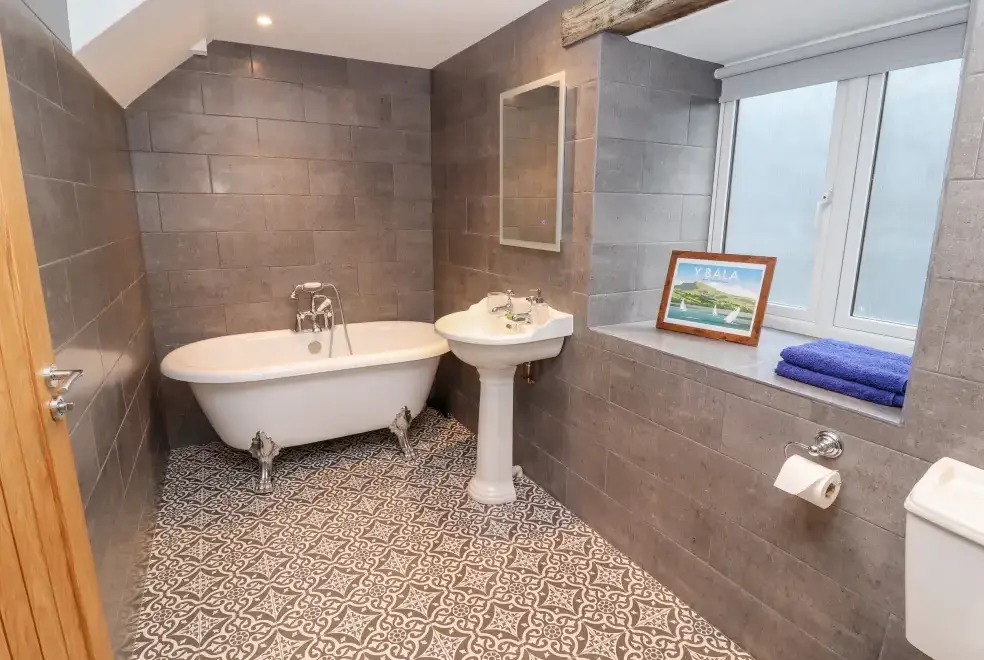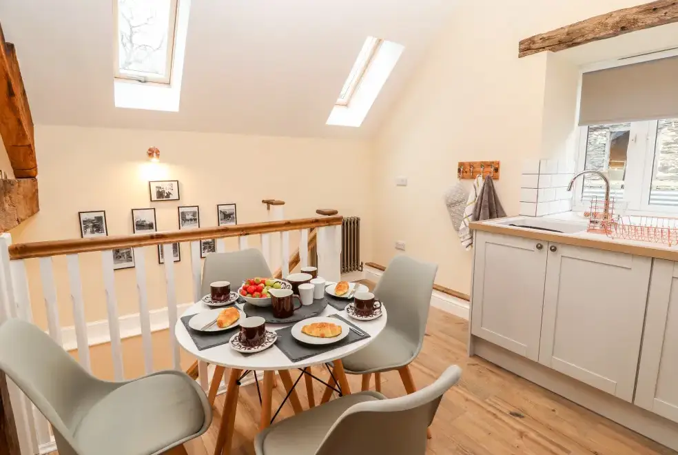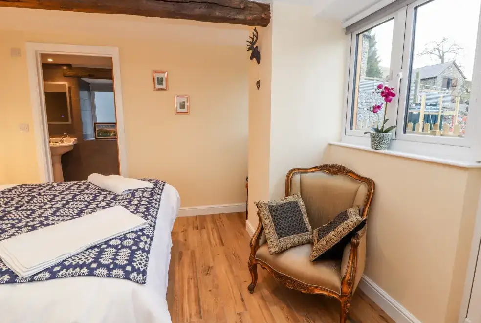 Stabl Cottage provides a luxurious self-catering experience with its well-equipped kitchen, featuring an electric oven, hob, microwave, dishwasher, fridge/freezer, and washing machine. Guests can unwind in the enclosed garden, complete with a lawn and a hot tub, ideal for stargazing on clear nights. The property offers off-road parking for one car, and two well-behaved dogs are welcome, with dog blankets and treats provided. A small on-site waterfall adds to the cottage's charm, making it a perfect romantic retreat in North Wales.