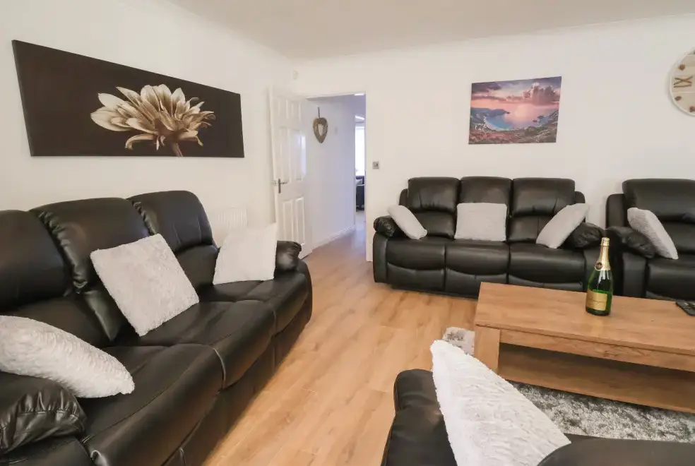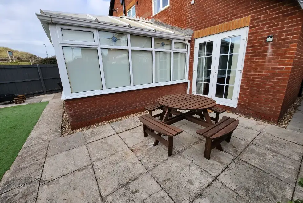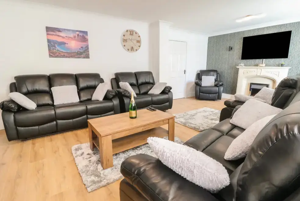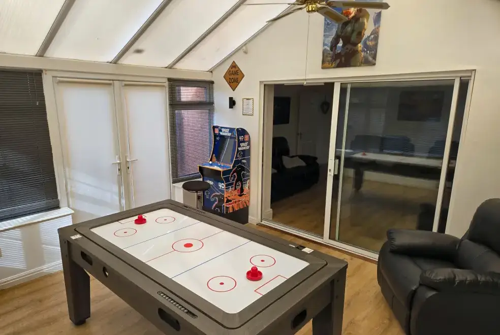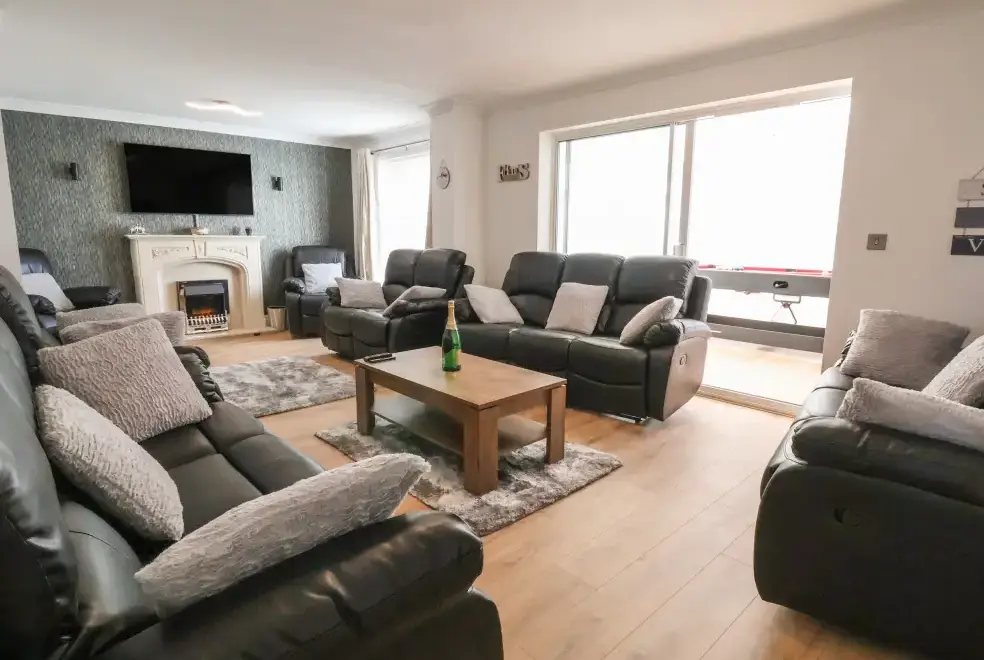 The Beach House in Prestatyn, Denbighshire, offers a range of luxurious living spaces designed for family enjoyment. The property includes a modern kitchen/diner equipped with top-of-the-line appliances such as a gas Range oven and hob, microwave, fridge/freezer, dishwasher, washing machine, and tumble dryer. Entertainment options are abundant, featuring a Smart TV, PlayStation, a selection of games, and a dedicated games room with a pool table and ice hockey table. The sitting room is a perfect spot for relaxation with plush recliner sofas, an electric fire, and a Smart TV, while the conservatory provides additional space for leisure activities.