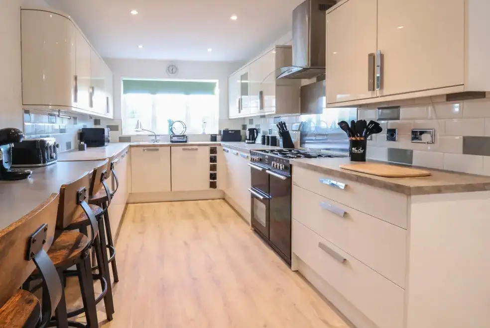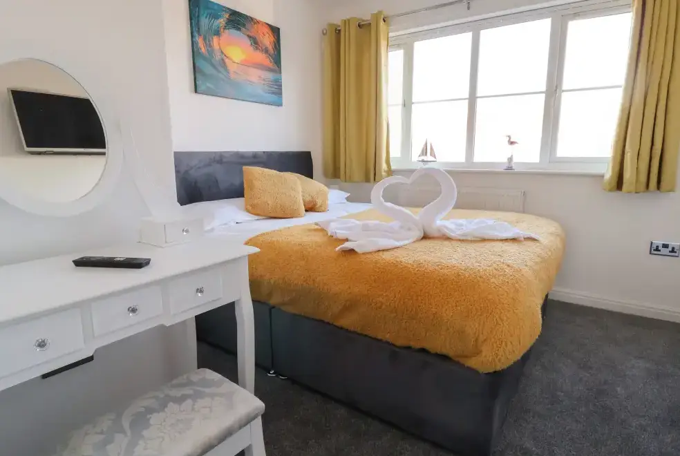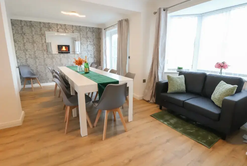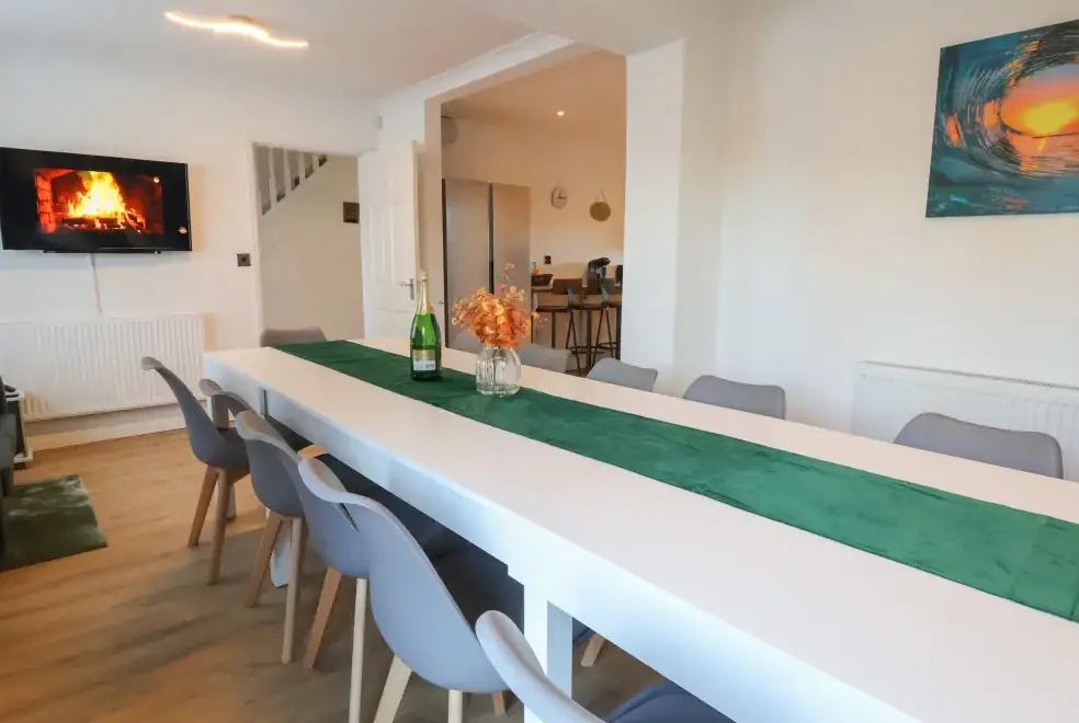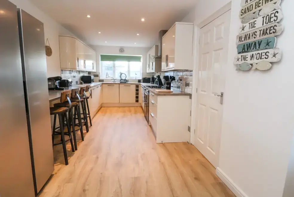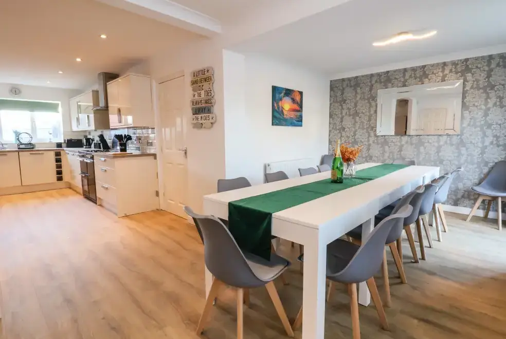 The Beach House in Prestatyn, Denbighshire, offers a range of luxurious living spaces designed for family enjoyment. The property includes a modern kitchen/diner equipped with top-of-the-line appliances such as a gas Range oven and hob, microwave, fridge/freezer, dishwasher, washing machine, and tumble dryer. Entertainment options are abundant, featuring a Smart TV, PlayStation, a selection of games, and a dedicated games room with a pool table and ice hockey table. The sitting room is a perfect spot for relaxation with plush recliner sofas, an electric fire, and a Smart TV, while the conservatory provides additional space for leisure activities.