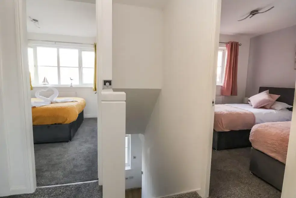 With seven well-appointed bedrooms, The Beach House ensures comfortable and flexible accommodation for up to 15 guests. The bedrooms include a super-king-size room with a private balcony and en-suite, two additional king-size rooms with TVs, one of which has an en-suite, two twin rooms, a ground-floor king-size with en-suite, and a ground-floor triple room with three single beds and an en-suite. A family bathroom and a cloakroom complete the accommodation, ensuring convenience for all guests. The Beach House is perfect for a family holiday in North Wales, offering a blend of luxury and comfort.
