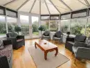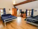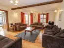 This detached, stone-built farmhouse is a superb retreat featuring exposed beams, a large conservatory, and two sitting rooms, ensuring a comfortable stay for large groups. The property comprises five bedrooms: a master double with an en-suite, two additional doubles each with an en-suite (one on the ground floor), a twin with an en-suite, and a family room with adult bunks and an en-suite. There's also a cloakroom with a washing machine, a fitted kitchen with a breakfast area, and a dining room. For larger parties, it can be booked with ref. 2250 to accommodate up to 28 people.