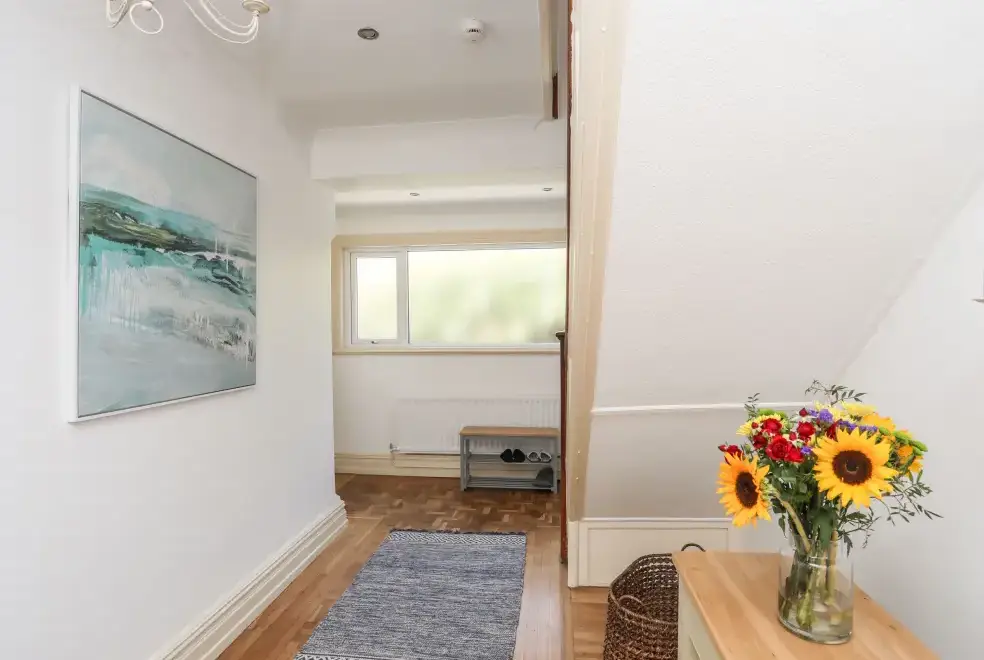 Awelfryn features four bedrooms: a super-king-size with an en-suite shower room, two doubles, and a single room. Additionally, there are a ground-floor bathroom, a first-floor shower room, and a cloakroom. The property ensures guests enjoy restful slumbers and the convenience of multiple bathroom facilities. Awelfryn offers the ideal setting for a comfortable retreat in Criccieth.