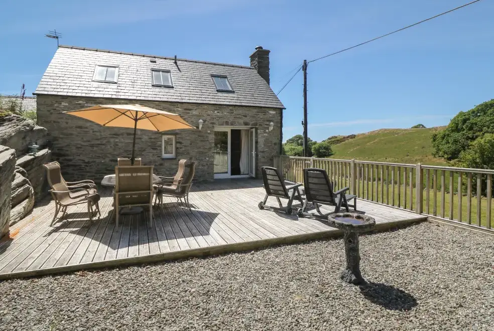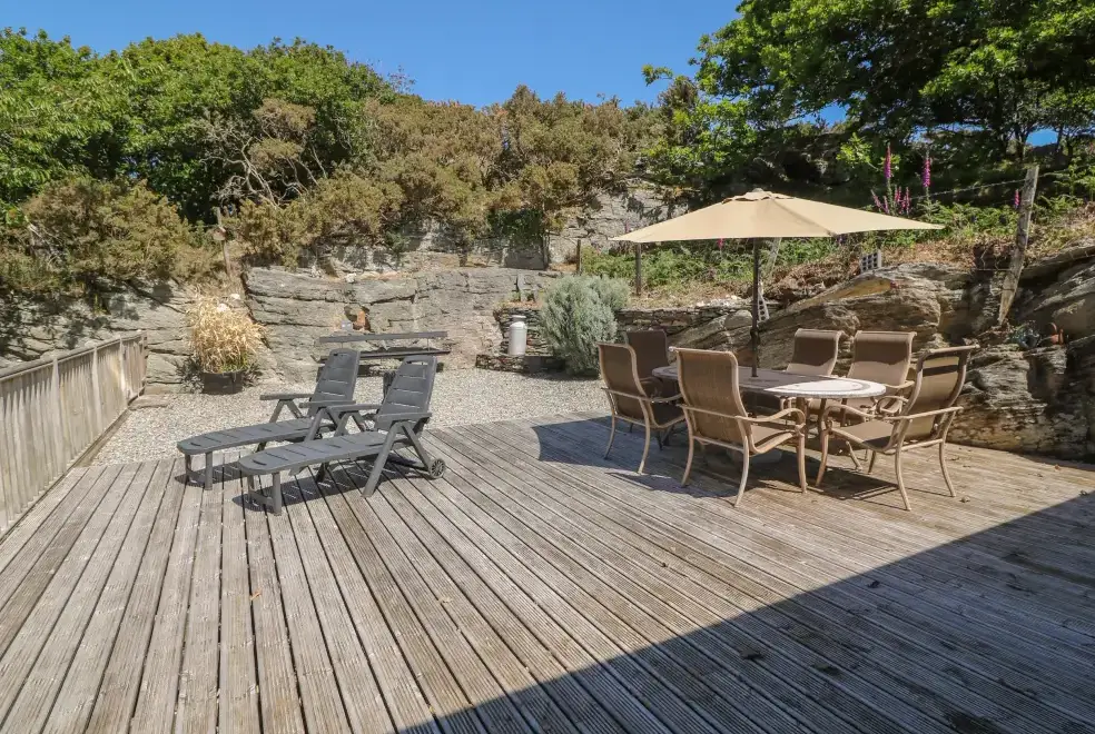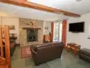To the rear of this barn conversion is a fantastic large decked area, complete with ample garden furniture, where you can sit out and soak up the fine rural scenery. This area is edged by lawns. To the front of the property there is also a bench where you can soak up this lovely country location.