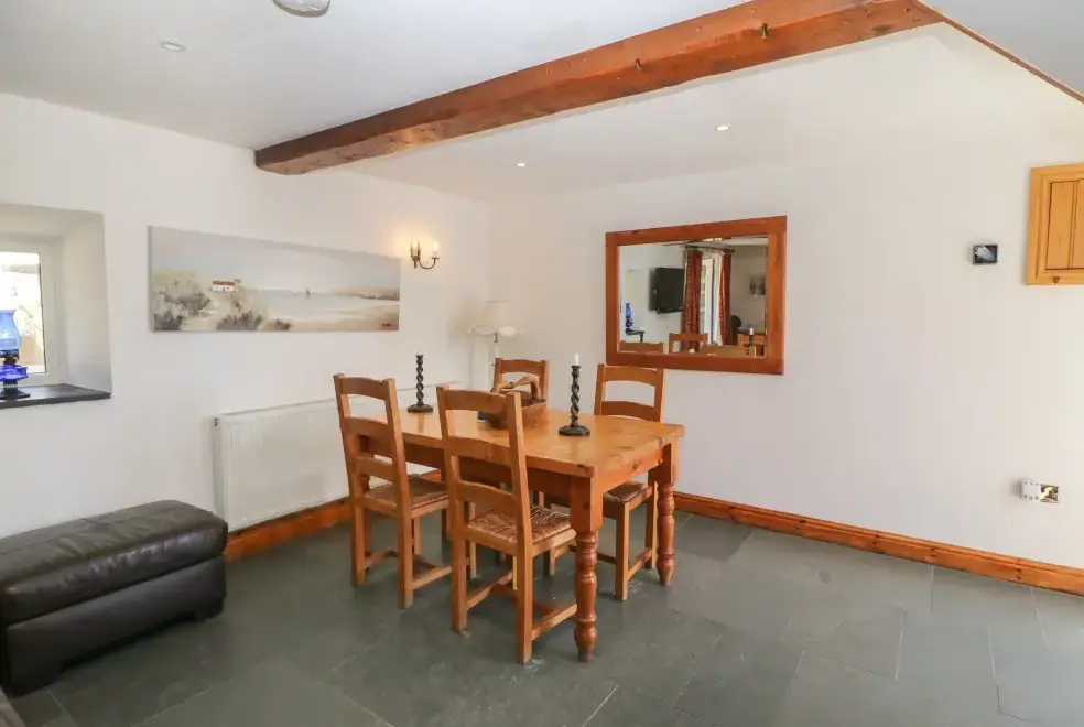 Escape for a week or two of rural bliss at this fantastic 2 bedroom barn conversion. Set in a truly stunning countryside location alongside one other holiday property, next to farmlands and hills, this really is an idyllic part of Wales. With 2 bedrooms, this pet-friendly holiday barn sleeps up to 4 and also welcomes up to 2 well behaved pet dogs.Inside the lounge with its comfy sofas, TV, woodburning stove and exposed beams is an ideal place to relax and also houses the dining table. There is also a modern fitted kitchen, shower-room with WC as well as a comfy double bedroom and twin bedroom.