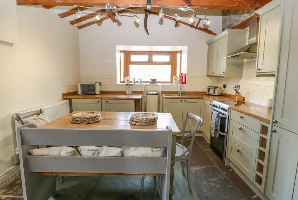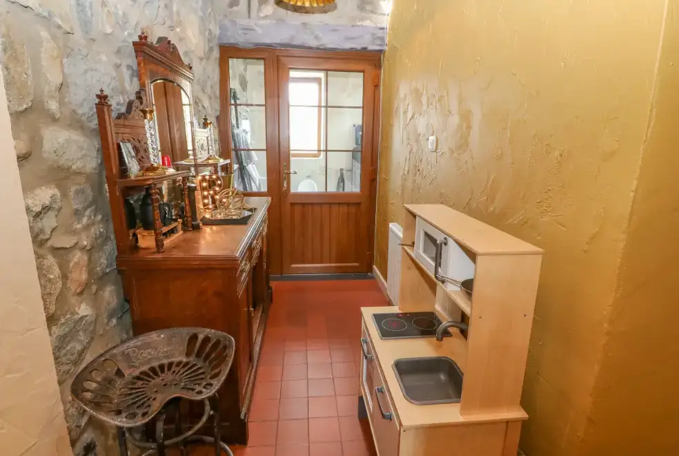 Beudy offers an inviting outdoor experience with a private enclosed garden, a furnished patio area, and access to a communal garden and play area. The property also provides three off-road parking spaces. This dog-friendly holiday cottage welcomes two well-behaved dogs at an additional charge of £30 per pet, per holiday. Occasionally, a third dog may be accommodated for an extra £40, subject to prior arrangement with the owner. An electric car can be charged from a 3-pin socket in the house for £100 per day.