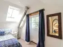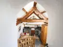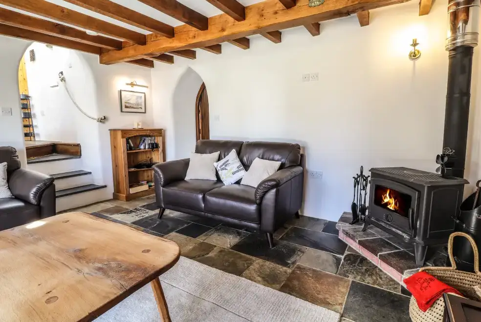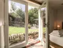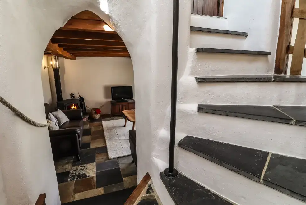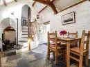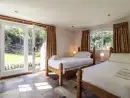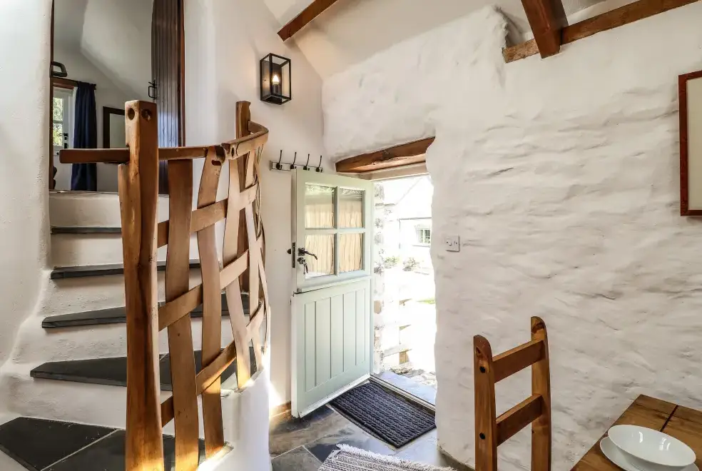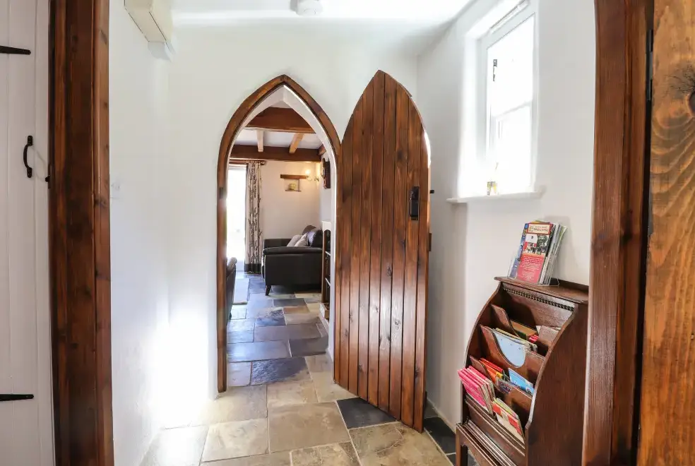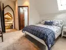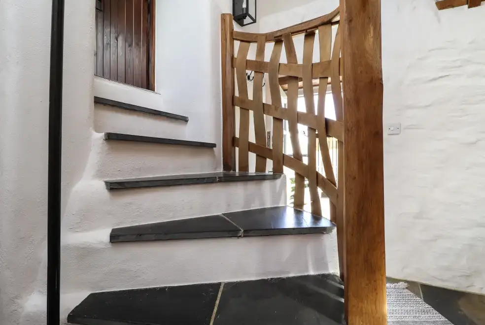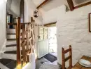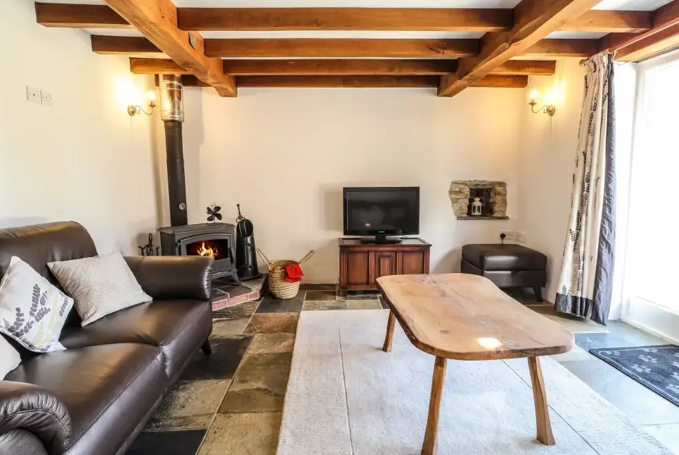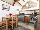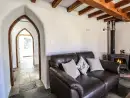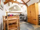 Experience the perfect blend of comfort and style as you enter Y Felin at Coed Cadw. The kitchen/diner features a vaulted ceiling adorned with rustic beams and is equipped with top-notch appliances, including a dishwasher and electric cooker. Enjoy meals at the oak dining table. After dinner, relax in the inviting sitting room, where you can unwind with a book by the wood-burning stove or enjoy a family movie night with the selection of DVDs available. The ground-floor twin room provides direct access to the quaint rear garden via patio doors, while the bespoke stairs lead to a bright and airy double room with a vaulted ceiling, skylights, and a convenient en-suite cloakroom.