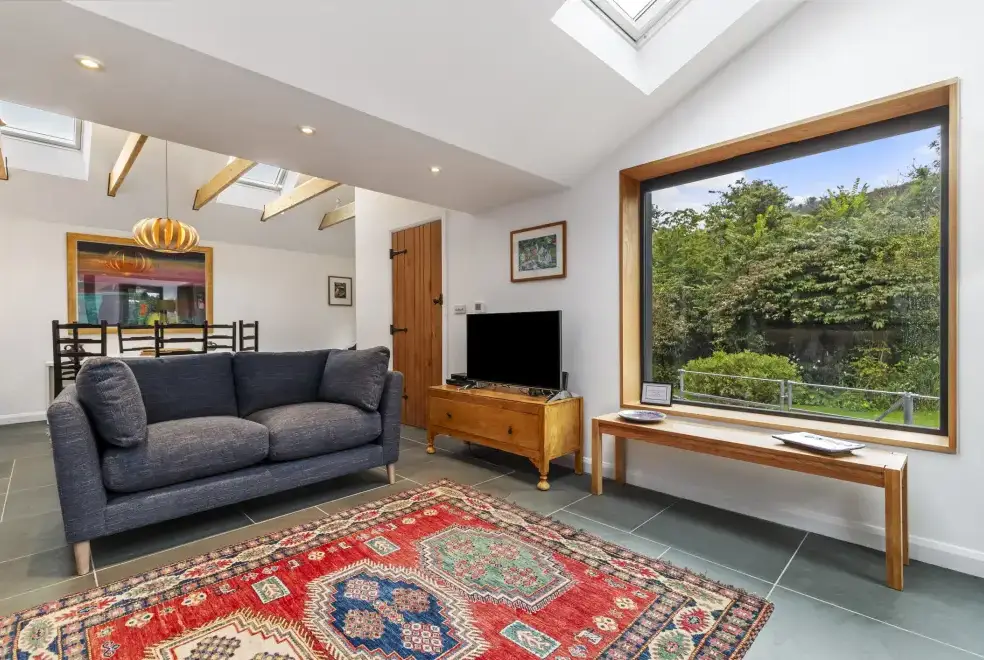 - Open plan living/dining room with comfortable sofas, old pine furniture, widescreen TV, DVD player and stereo/CD system