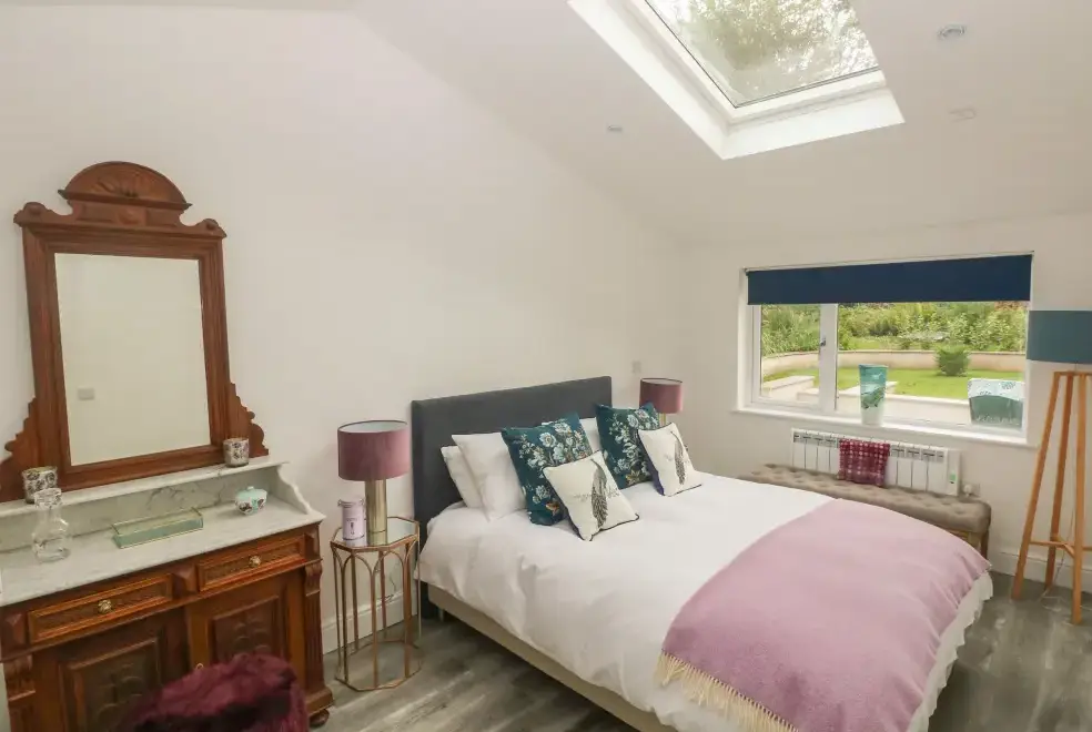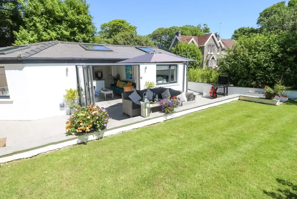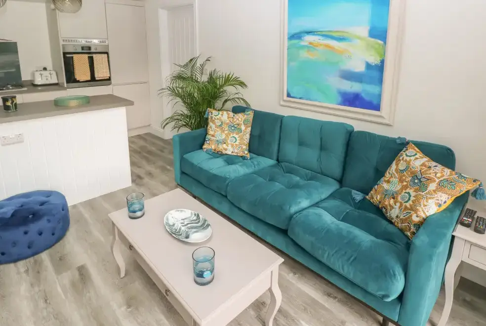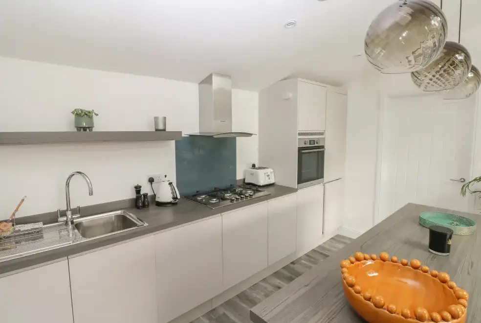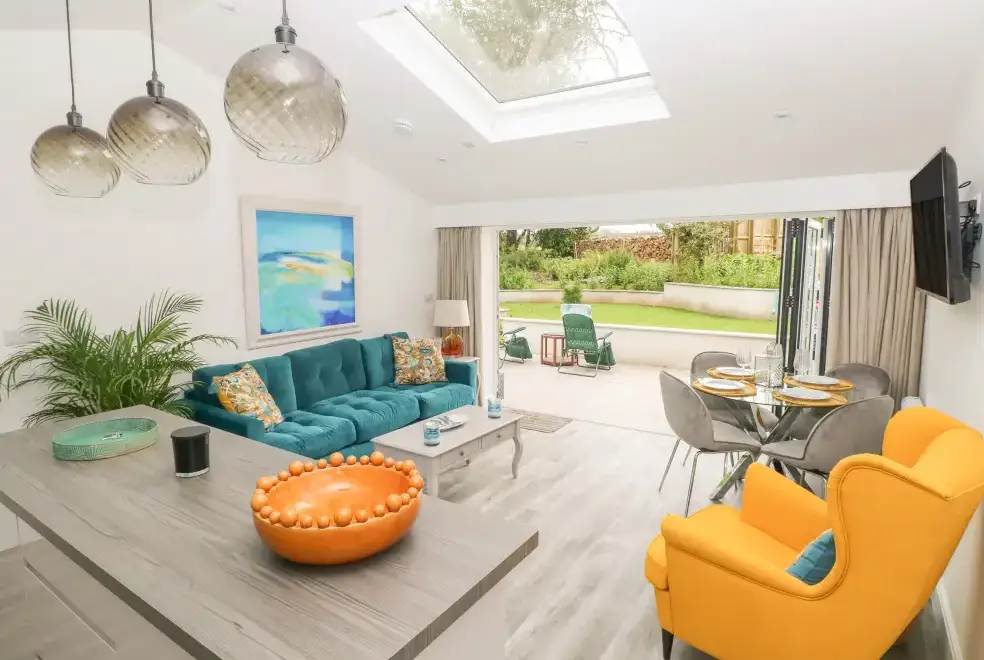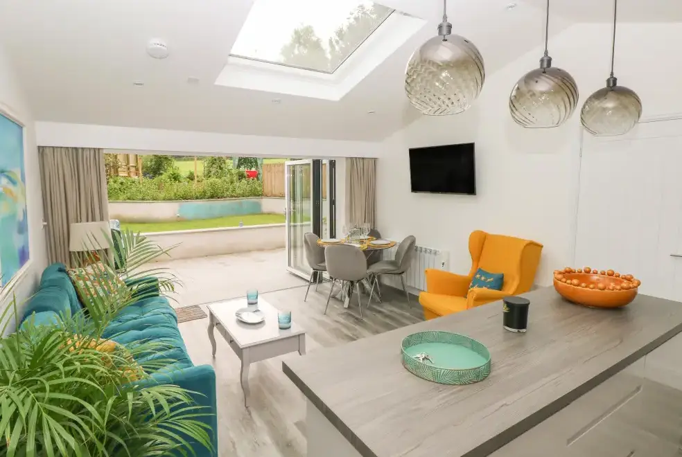 Nestled in an idyllic location to discover the stunning Welsh coast, Summer House is a stylish all-ground-floor property that offers contemporary interiors and a delightful outdoor space. Situated on the grounds of the owner's home in the scattered village of Penally, this property ensures a memorable stay for all guests. The bi-fold doors flood the space with natural light, creating a bright and airy atmosphere. Guests can relax on the plush blue sofa or the inviting mustard armchair, and enjoy preparing meals in the well-appointed kitchen. The kitchen is equipped with an electric oven, gas hob, fridge, dishwasher, and washer/dryer, providing everything needed for a self-catered stay.