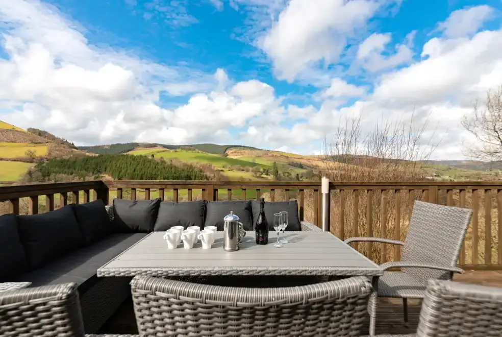 Outside is a large decked area with ample seating, a huge BBQ. This is a great spot to sit out and soak up the stunning scenery.The outdoor heated pool is safely gated and is open from Easter to September (use outside of these dates may be possible depending on the weather). The mountain views from the swimming pool are simply superb.