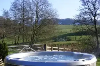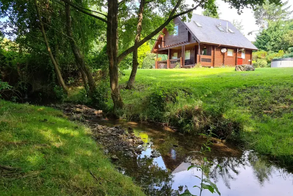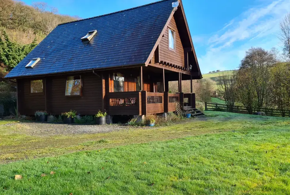 Searching for a lovely log cabin in a wonderful rural location in Powys? If so, Suran-Y-Coed could be perfect for you. This Scandinavian Finlodge is complete with a private hot tub, and is set within its own fenced grounds next to woodlands and a bubbling stream. This area is wonderful for wildlife watchers as during the day you may lucky enough to see buzzards or kites whilst at night you can listen out for the little owls. With stunning views of the surrounding hills and woodlands nestled in this private valley, this 2 bedroom holiday lodge is ideal for relaxing and unwinding with family or friends.Constructed from solid pine timbers, this is a high quality wooden holiday lodge with an open plan ground floor which features a lounge area with free Sky TV and DVD player, dining area, kitchen, ptr shower area and WC. The kitchen is fully equipped with microwave, dishwasher, fridge, washing machine, gas hob and electric oven. Upstairs is the comfortable double bedroom with en-suite bathroom and an equally comfortable twin bedroom. With a charming wooden interior, Suran-Y-Coed offers a wonderful holiday atmosphere and is centrally heated so you can be assured of a cosy stay. Outdoors there is a large veranda with garden furniture and outside lighting so you can make the most of those long summer evenings. Watch the sunset from the veranda with a chilled glass of wine after enjoying a dip in the hot tub where you can watch the stars twinkling in the sky.