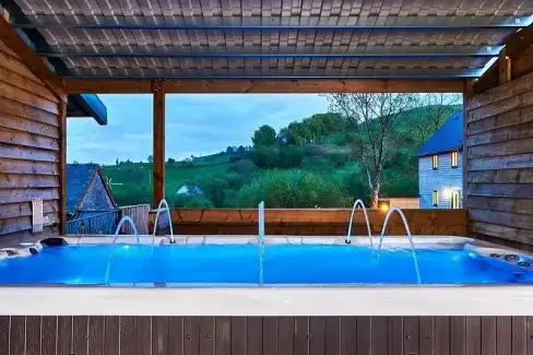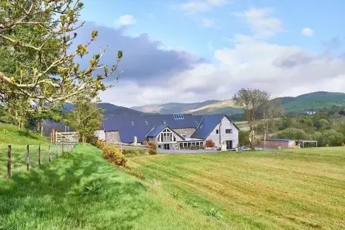Online Booking Available Viewed 31 times recently. Llanbrynmair 1 miles away Cae Madog Barn, Bont Dolgadfan, Powys, Wales sleeps 17 8 bedrooms 4 bathrooms multi-dogs (up to 4) family friendly Luxurious large barn conversion in mid Wales with stunning country views out to the Cambrian mountains, private heated outdoor swimming pool, bubbly hot tub and games room, ideal for families and groups of friends. 5 (5 reviews) ground floor bedroomensuite bedroom(s) Facilities, Features & Awards: 7 nights from £1989 Next available: 19 Dec - 3 nights online booking View