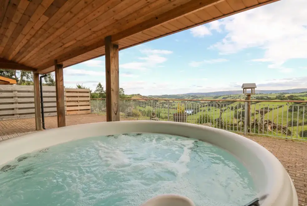 The two elegantly designed bedrooms each feature double beds and luxurious en-suite facilities, creating a true home-from-home experience. Step through the patio doors from the main living area to encounter rural bliss, with jaw-dropping countryside views available from several seating spots, some of which are sheltered for enjoyment regardless of weather conditions. The Firs' most prized feature is its hot tub, offering some of the most spectacular vistas imaginable. Enjoy a glass of bubbly while soaking in the awe-inspiring Powys countryside. Note: This property can be booked with Ref. 1058282, allowing up to eight guests to enjoy this stunning location.