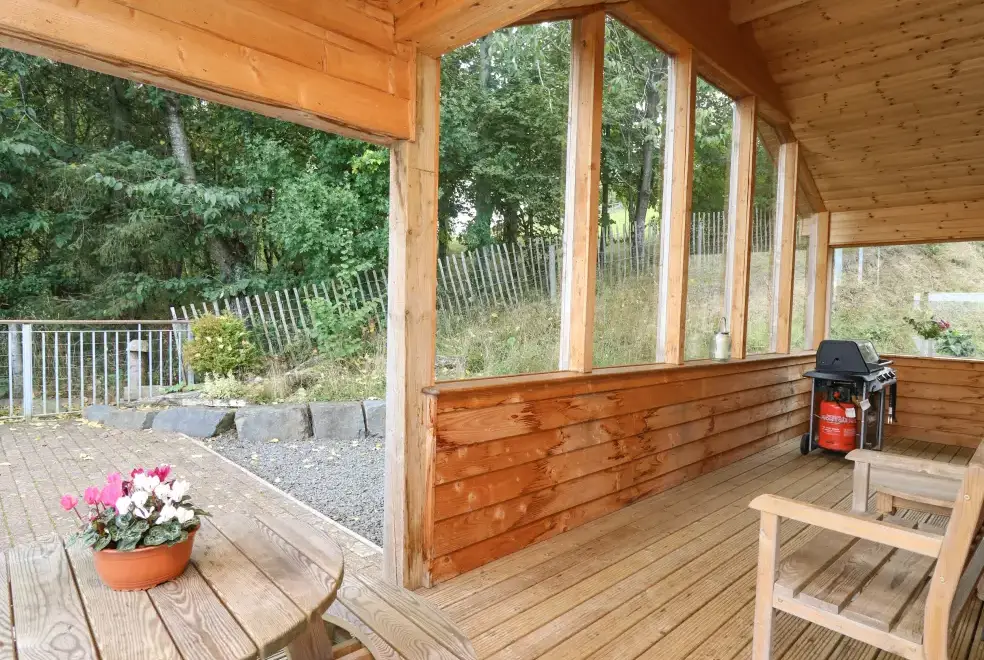 The Firs offers a wealth of amenities to ensure a comfortable stay. Bed linen and towels are included in the rent, and the property provides off-road parking for two cars. Outside, guests will find a gravelled area, patio, veranda, and decking with furniture, perfect for enjoying the stunning surroundings. While pets and smoking are not permitted, the lodge's serene setting offers an ideal escape. The nearest shop and pub are just three miles away, and short breaks are available from Friday to Monday or Monday to Friday. A Good Housekeeping Bond of £250 is required, with a maximum occupancy of four guests, including infants.