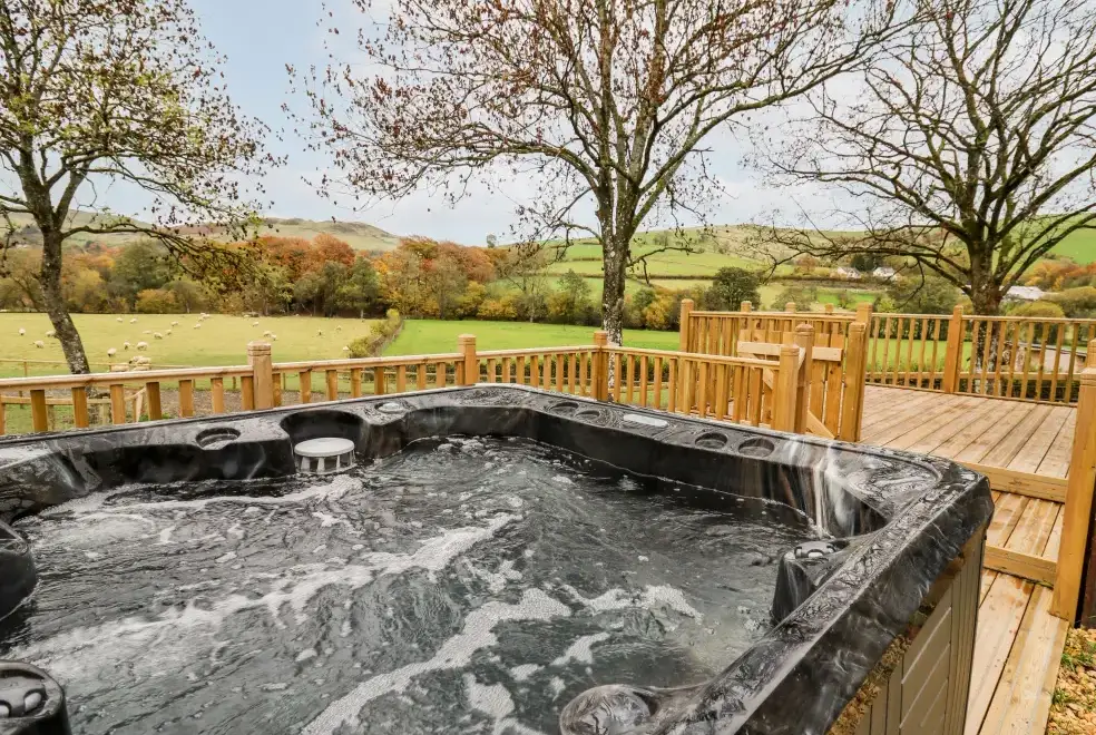 On a sunny day, the decked area is the shining star of this property – sit out under clear blue skies and look out over trees and woodland, hilly views as far as you can see. It’s a tranquil gem of natural beauty, which you can enjoy all from the comfort of your home from home. The hot tub adds to this stunning experience, where you can relax into bubbly waters and take in the magnificent natural views.