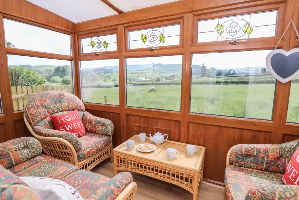 This delightful cottage has been beautifully renovated to create a modern interior with a fabulous sense of light and space. Nestled on the edge of the owner's farm, it is enveloped by breathtaking valley scenery. The spacious hallway leads to all rooms, including a comfortable lounge with a TV, a well-equipped kitchen with a dining area, and a gem of a conservatory where guests can enjoy the changing views, whether over morning coffee or an evening drink. The stylish family bathroom includes a shower over the bath, while the master double room and cosy twin room offer relaxing countryside vistas.