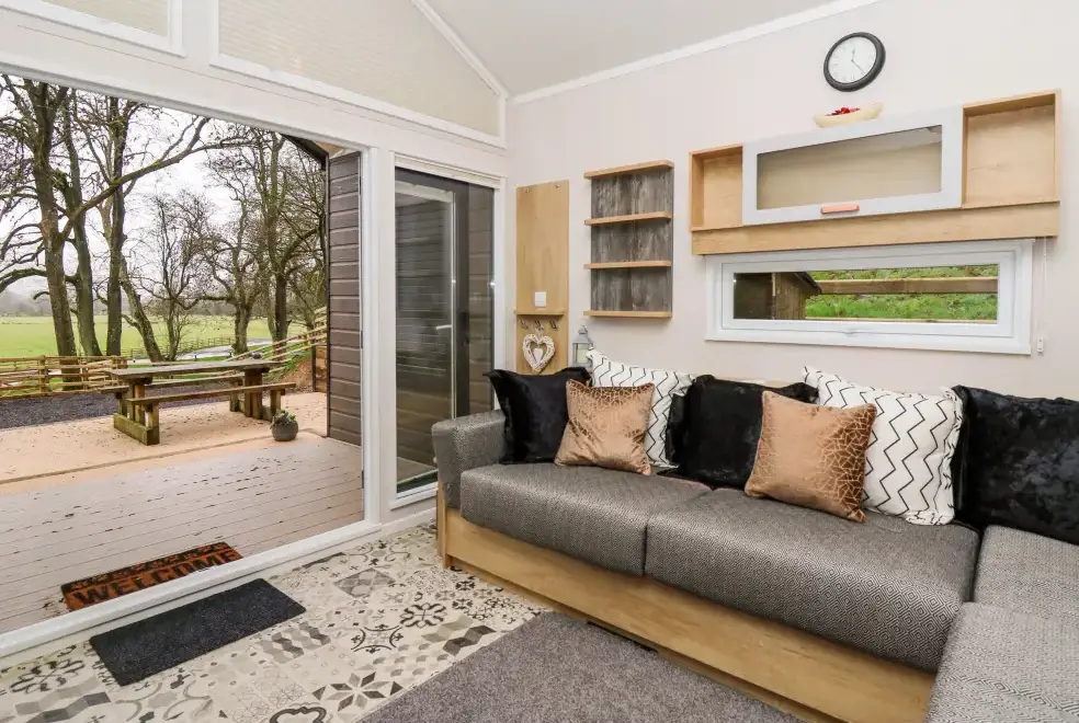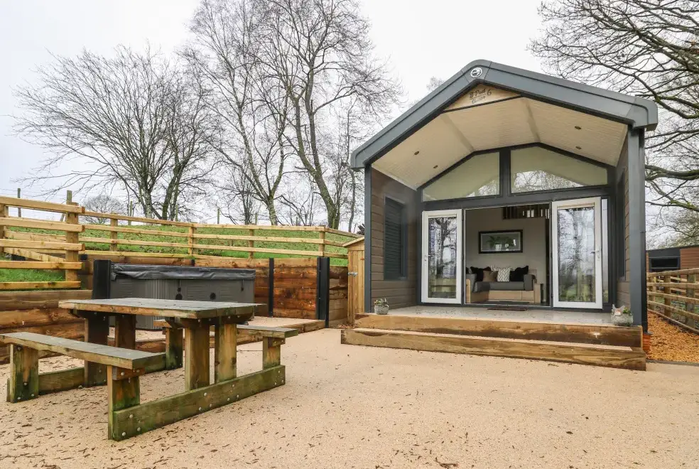 Outside, this lodge is a real treat where you can dine alfresco next to trees whilst looking out to the countryside, or let off steam in the warm bubbly outdoor hot tub, where you can also appreciate the views.