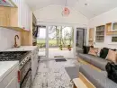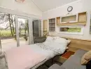 A mezzanine area houses a double bed (accessed via a ladder), and is perfect for a couple wanting togetherness who are happy to climb the ladder. The lodge is ideal for two but can accommodate up to six, with use of the sofa bed and the pull-down bed in the open plan living area.