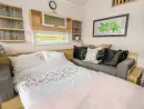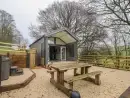 The lodge is compact, but has everything you need from a holiday home. The open plan space has a nice kitchen area with gas cooker and hob, microwave and fridge in which to quickly throw together a warming meal after a day out. Although there is a dining table, you may opt to eat outside on the patio and enjoy the beauty of the surrounding countryside. The patio also has a hot tub ideal to relaxing and unwinding on holiday.In the evening, you can curl up in the armchair or on the sofa and catch up with your favourite soaps or use the WiFi to check your social media. Before bed, take a warm shower in the walk-in shower.