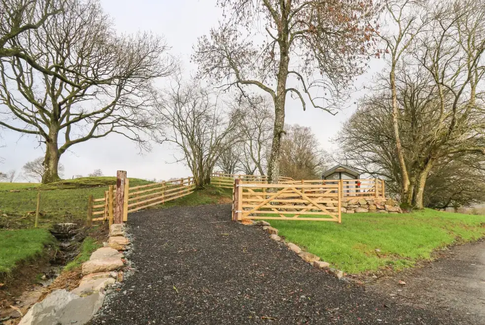 Although one of a number of lodges, Woodland Escape is located in its own enclosure accessed by a long, pretty path from the main lane. A gate at the end of the path aids security, and the open countryside around helps to create an atmosphere of remoteness.