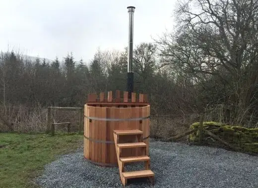 Once booked, the hot tub will be prepared for you and ready for your arrival. We don’t use nasty chemicals and instead our tub is cleaned with fresh water which is changed for each guest. The booking fee includes three crates of wood and a crate of kindling which is enough to get the hot tub to a warm lovely temperature and to provide a further use the next day. Additional crates of wood can be purchased at £10 a crate. How much wood you will need depends on how many times you plan to use the tub and the length of time between each use. There is an insulated cover which goes over the top of the tub and helps to keep the water warm when not in use.