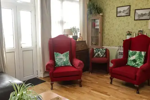 Online Booking Available Viewed 38 times recently. James's Parlour with exclusive use of shared Indoor Swimming Pool, Sports Court & Play Area, Whitchurch, Shropshire, England sleeps 12 5 bedrooms 3 bathrooms No pets family friendly Stylish roomy 5 bedroom 3 bathroom barn conversion in rural Shropshire near Whitchurch, with access to excellent onsite leisure facilities including an indoor heated swimming pool, a sports court and a play area for toddlers. ground floor bedroomensuite bedroom(s) Facilities, Features & Awards: 7 nights from £2100 Next available: 06 Feb - 4 nights online booking View